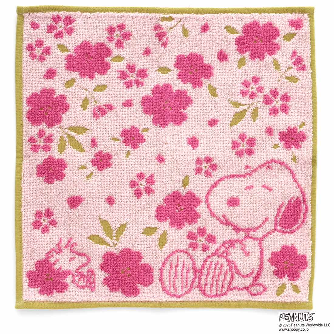 スヌーピー タオルハンカチ 桜シリーズ(オーガンジー巾着パッケージ入り)満開桜 ピンク 【PEANUTS】