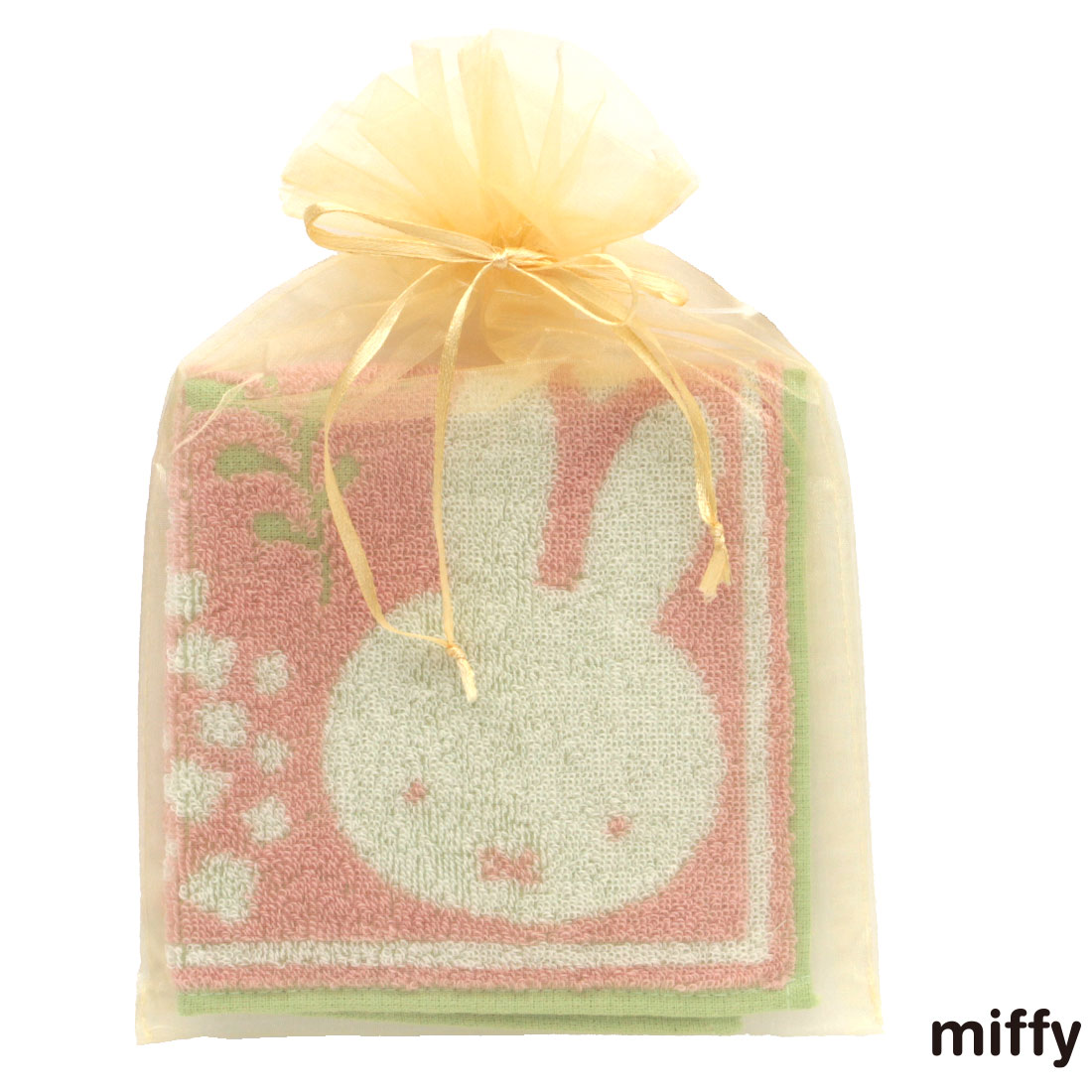 ミッフィー タオルハンカチ ミモザシリーズ(オーガンジー巾着パッケージ入り)ミッフィーとお花 イエロー 【miffy】
