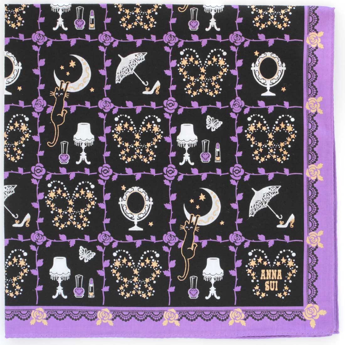アナ スイ プリントハンカチ リボンローズ柄 ブラック 【アナスイ ANNA SUI】