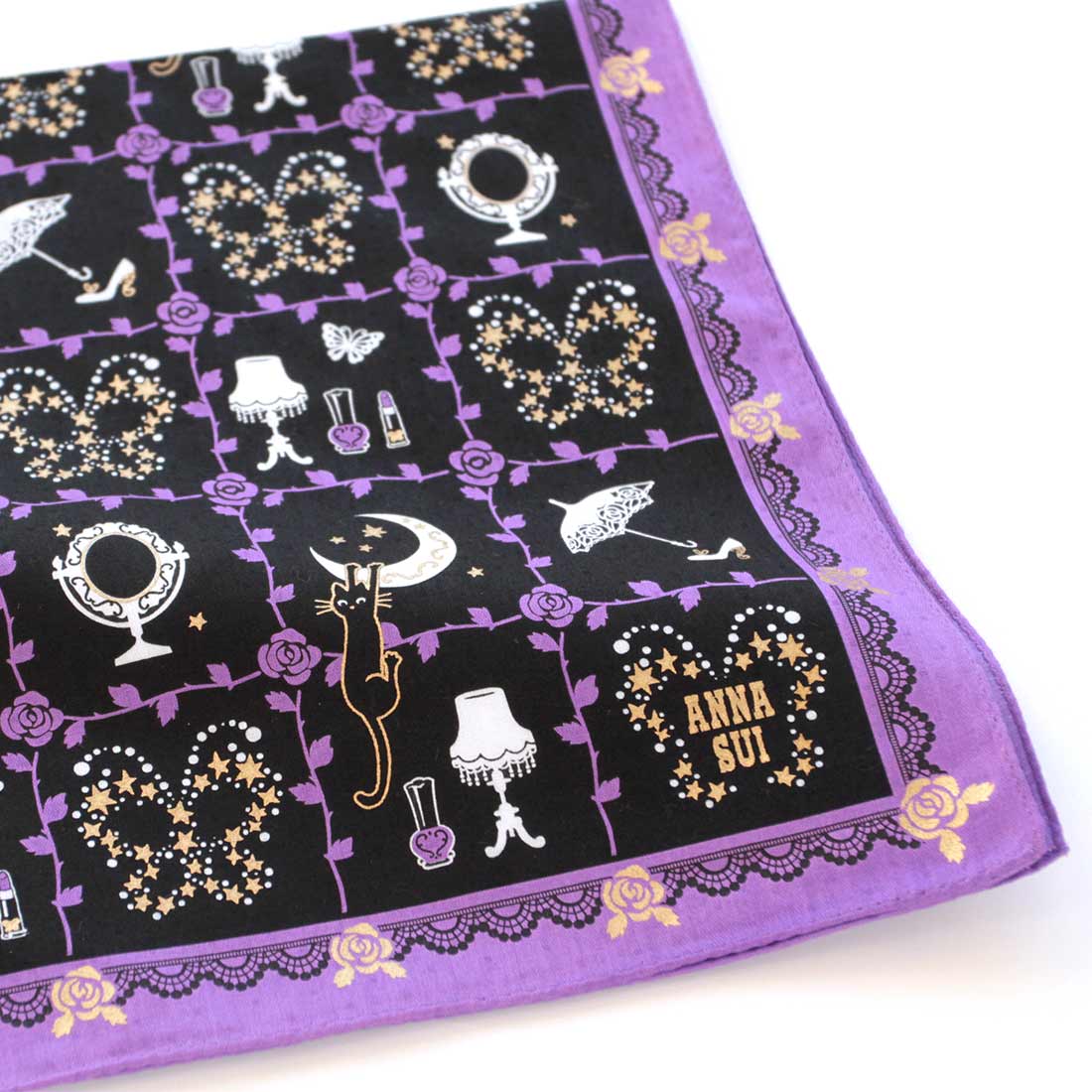 アナ スイ プリントハンカチ リボンローズ柄 パープル 【アナスイ ANNA SUI】