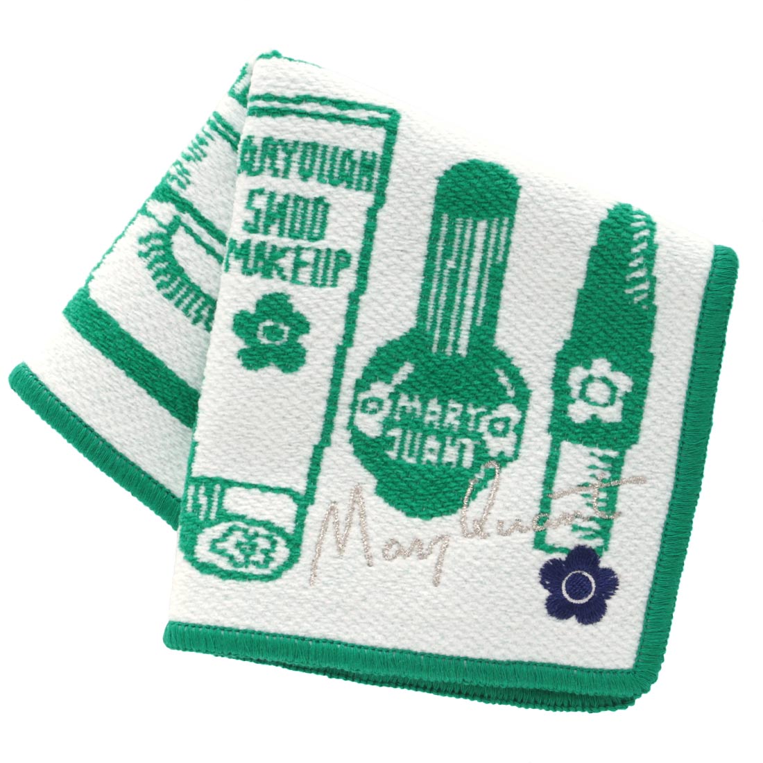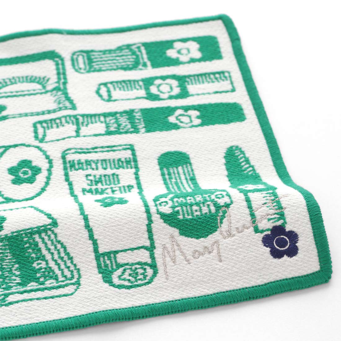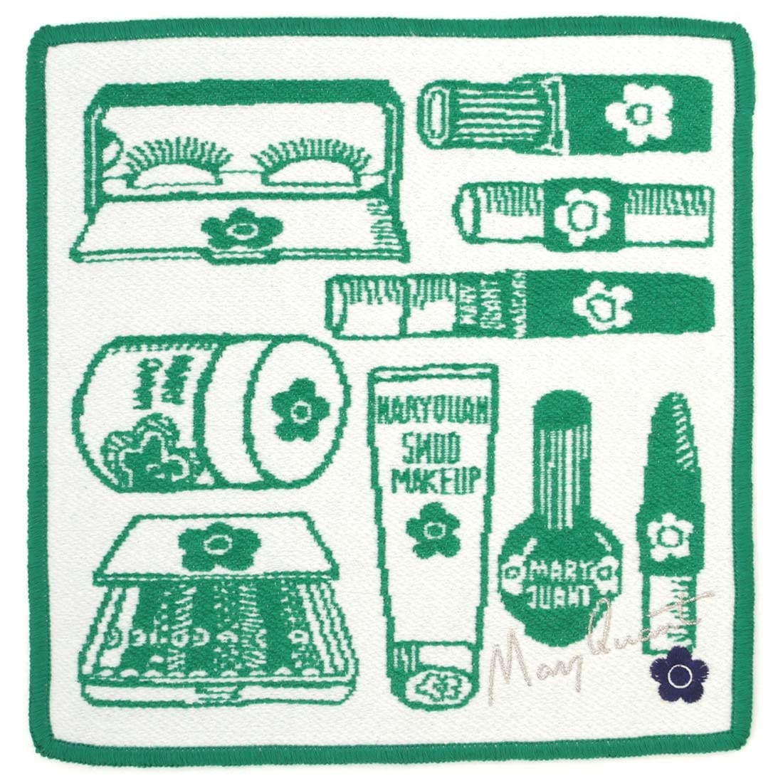 マリークヮント 綿モール糸使用 タオルハンカチ コスメモチーフ ブラック 【MARY QUANT マリークワント マリクワ】