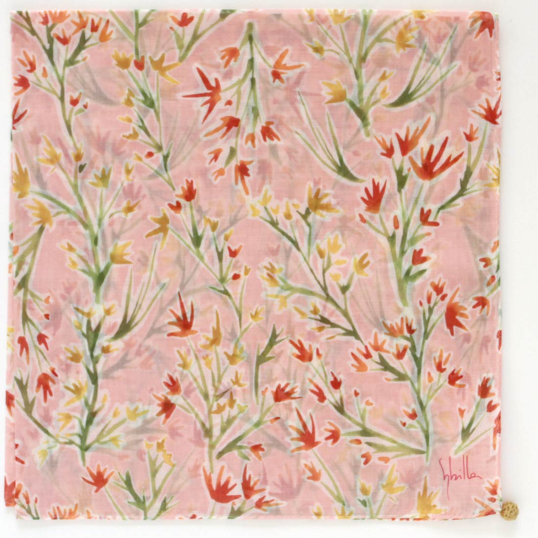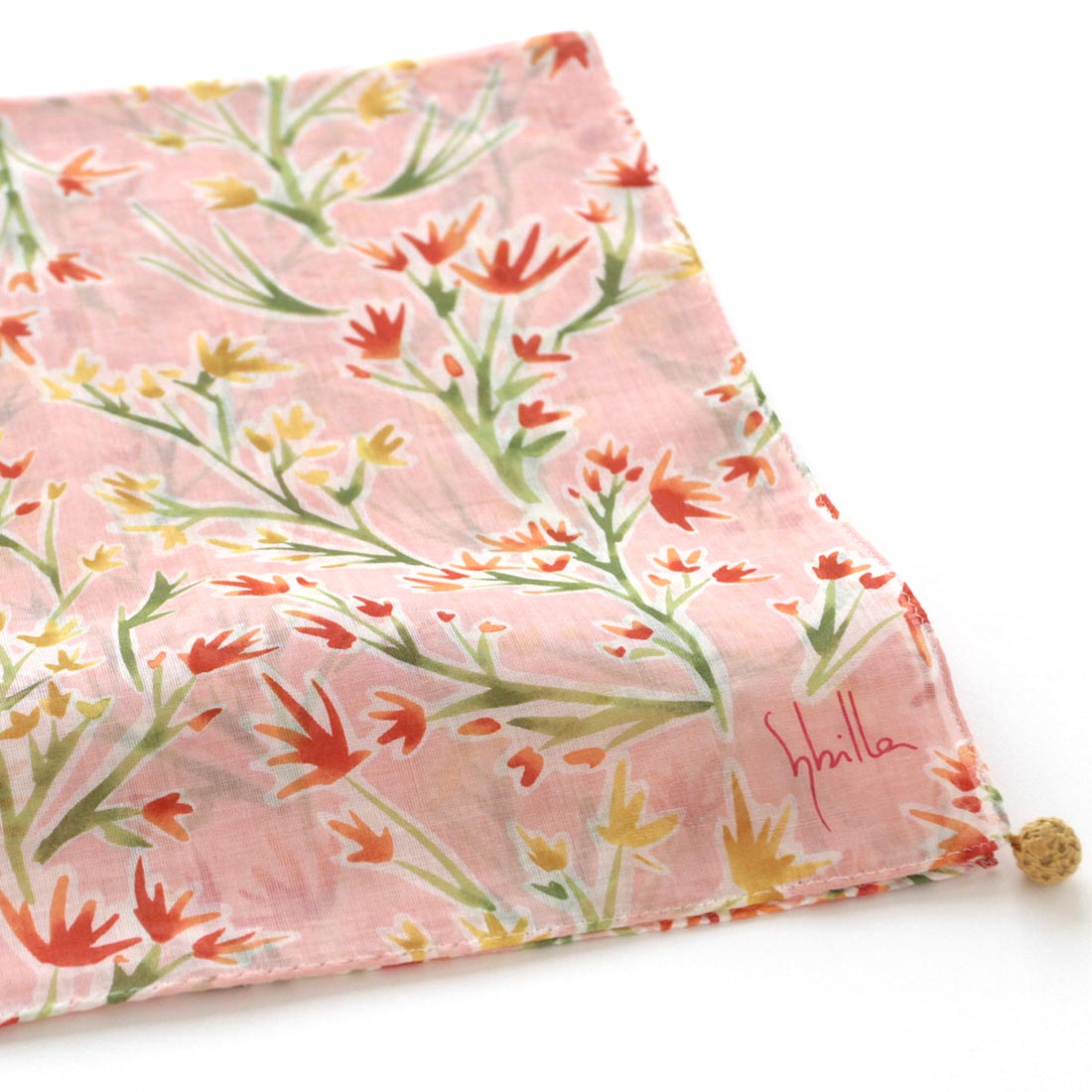 シビラ 大判 プリントハンカチ(58cm)ミモザとドット ピンク 【Sybilla】