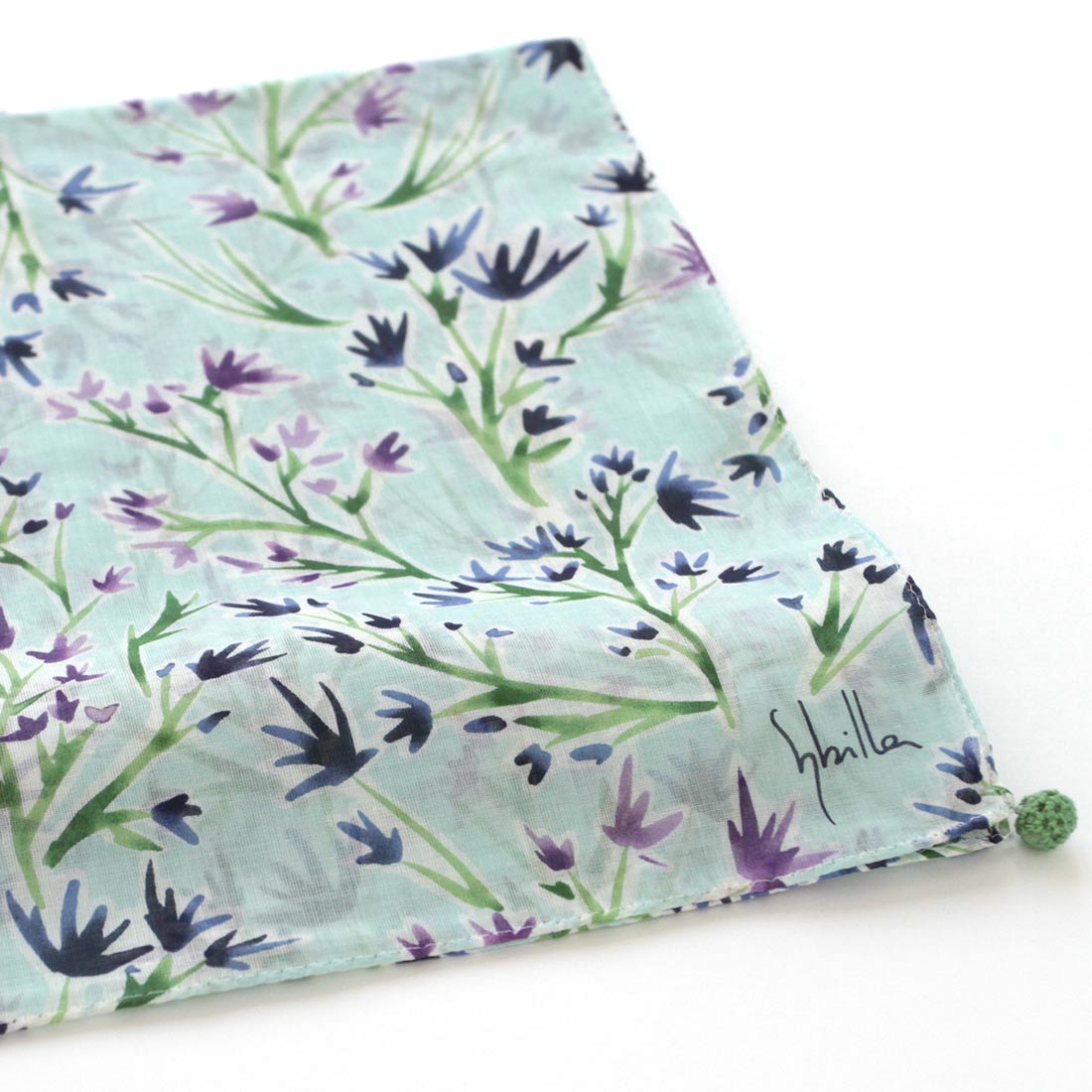 シビラ 大判 プリントハンカチ(58cm)ミモザとドット アイボリー 【Sybilla】