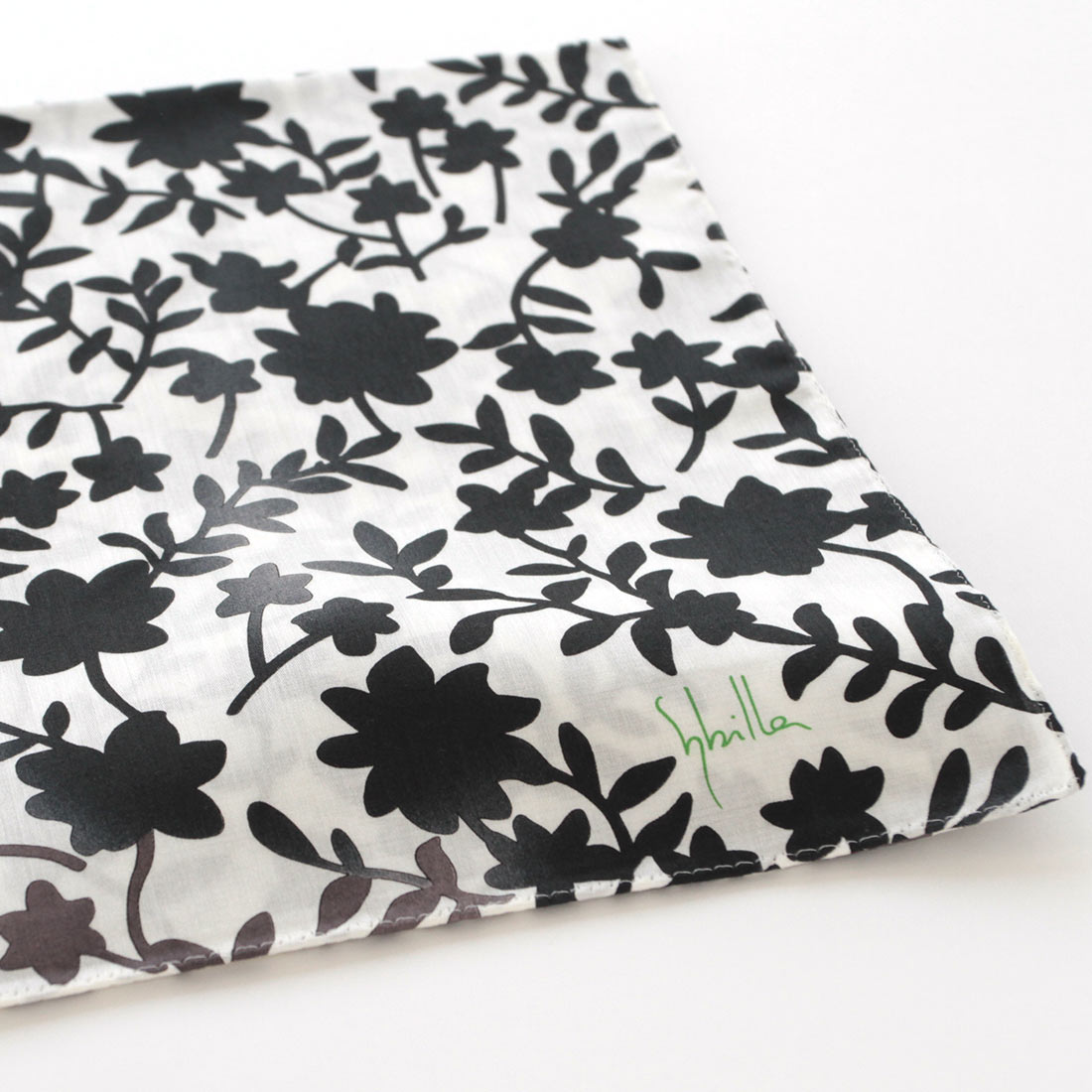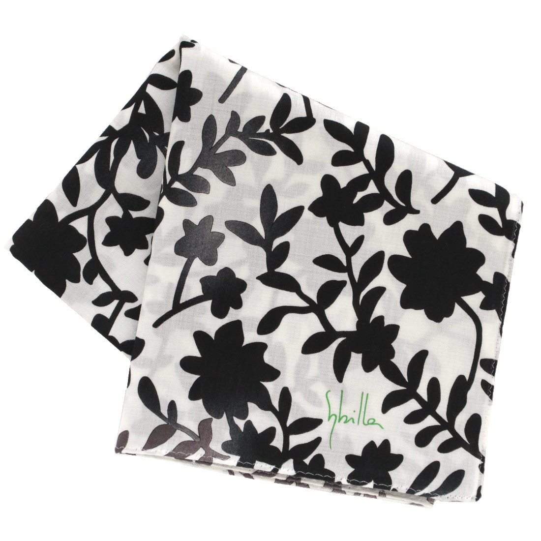 シビラ 大判 プリントハンカチ(58cm)ミモザとドット アイボリー 【Sybilla】