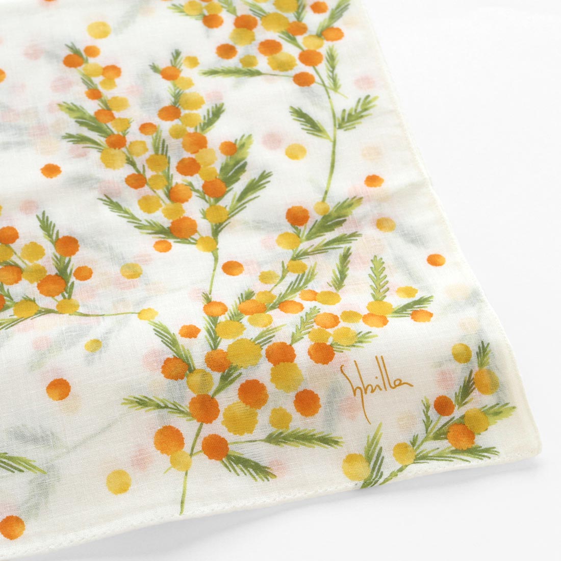 シビラ 大判 タオルハンカチ(28cm)ミモザ 0003 アイボリー 【Sybilla】