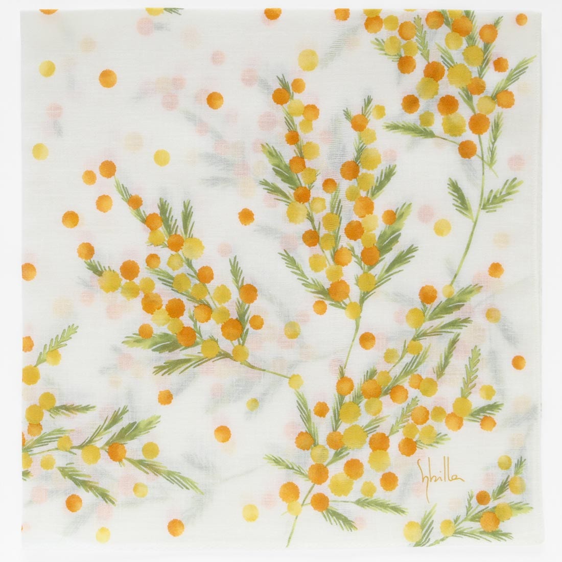 シビラ 大判 プリントハンカチ(58cm)ミモザとドット イエロー 【Sybilla】