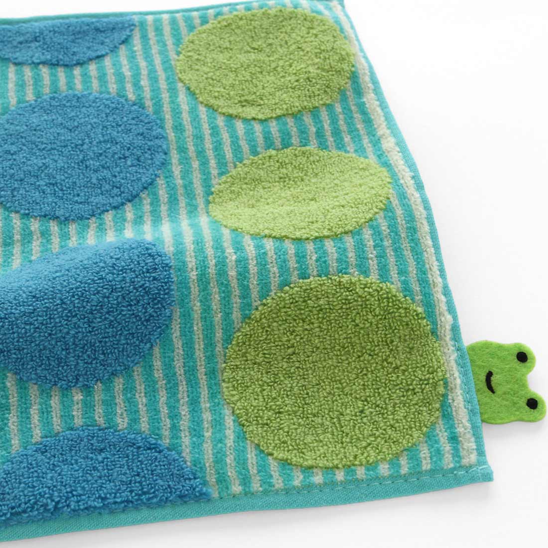 大胆な水玉とストライプの遊び心満載のデザインです。MEMEではなく、カエルがひょっこりしているのがポイントです。