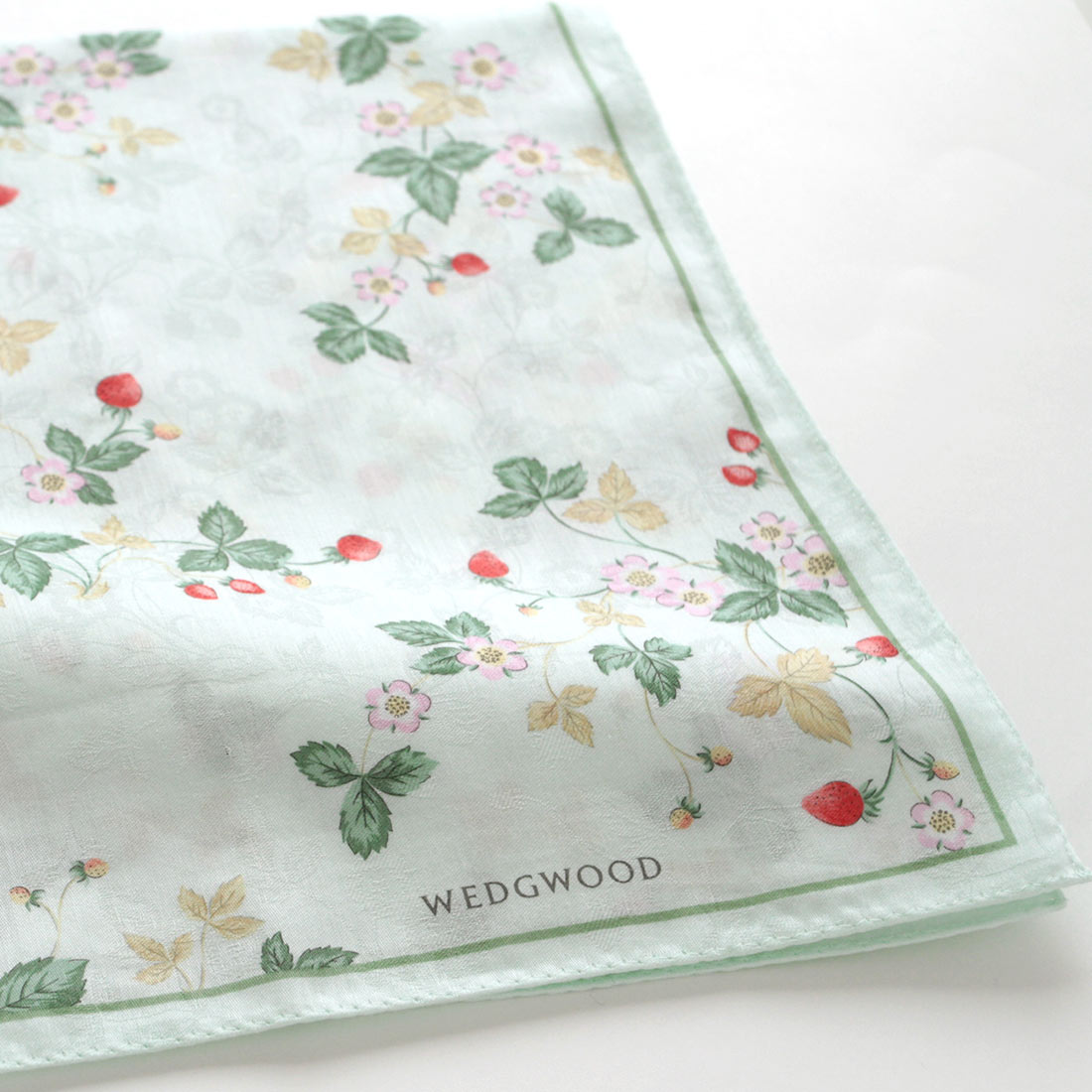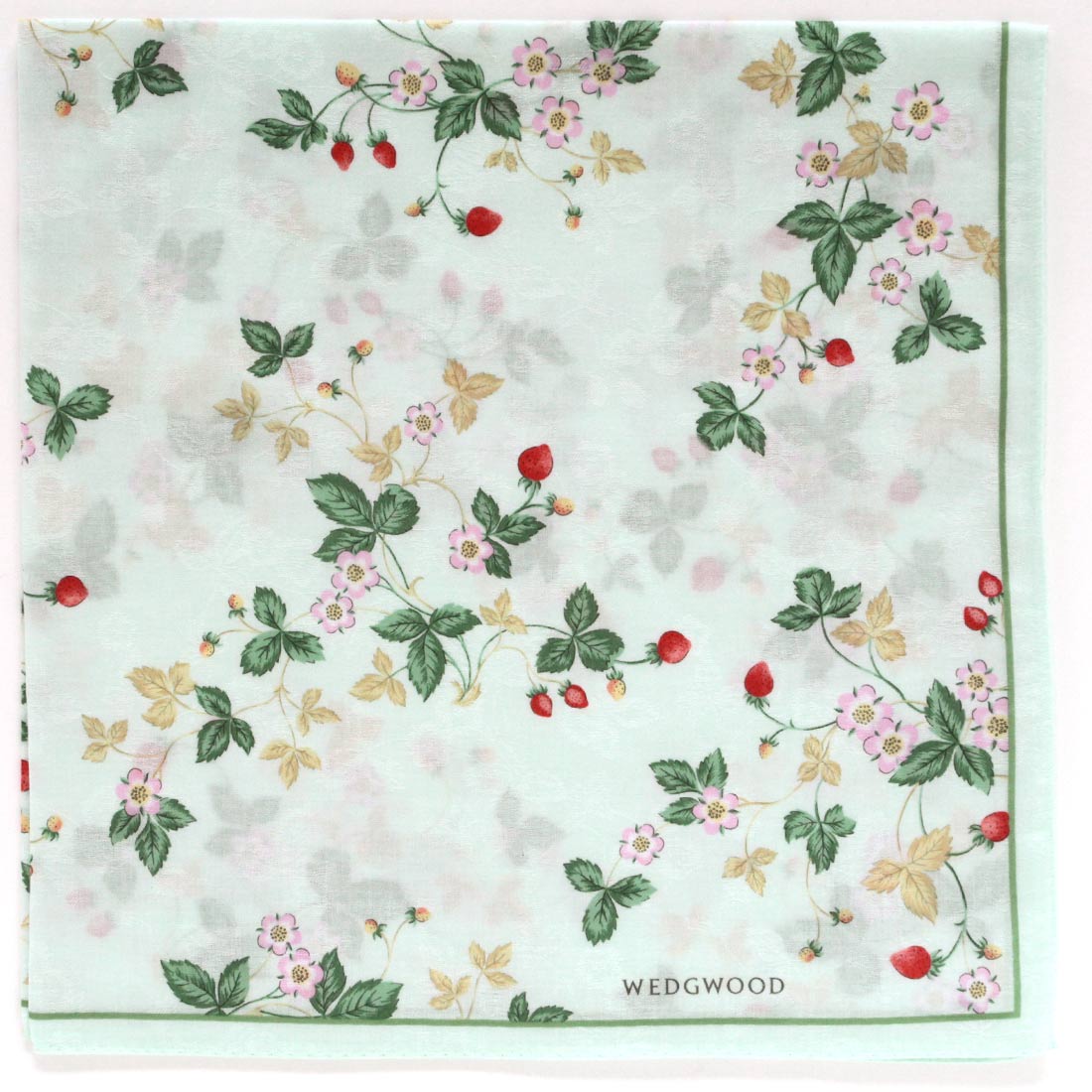 ウェッジウッド 大判 プリントハンカチ(58cm)ジャガード ワイルドストロベリー ホワイト 【WEDGWOOD】