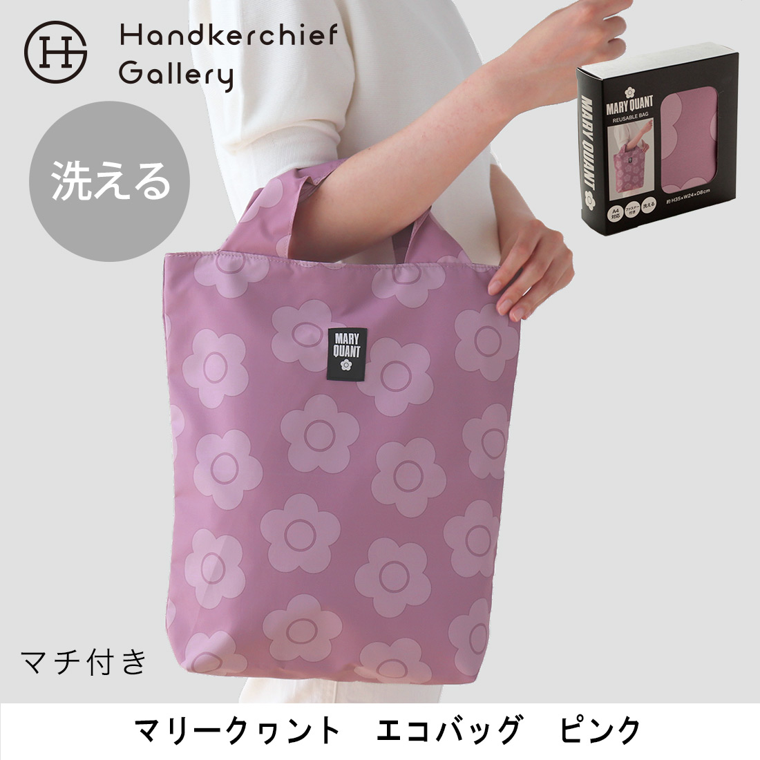マリークワント 洗える エコバッグ/マイバッグ 0002 ピンク (ブランド専用ギフトボックス入り) 【MARY QUANT マリークワント マリクワ】