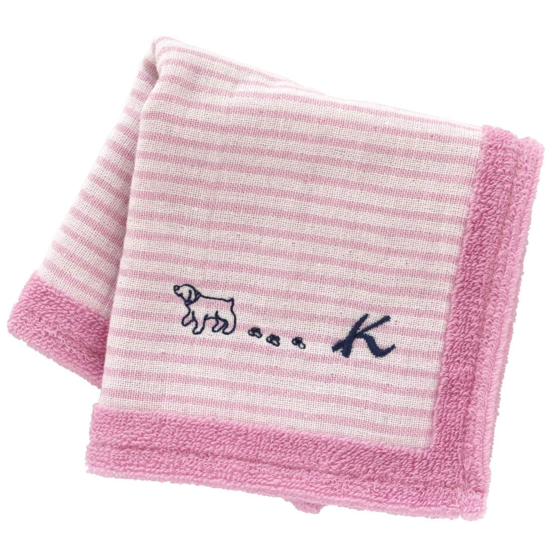 キタムラ 表ガーゼ地・裏タオル ストライプ いぬとKマーク ピンク 【キタムラ Kitamura】