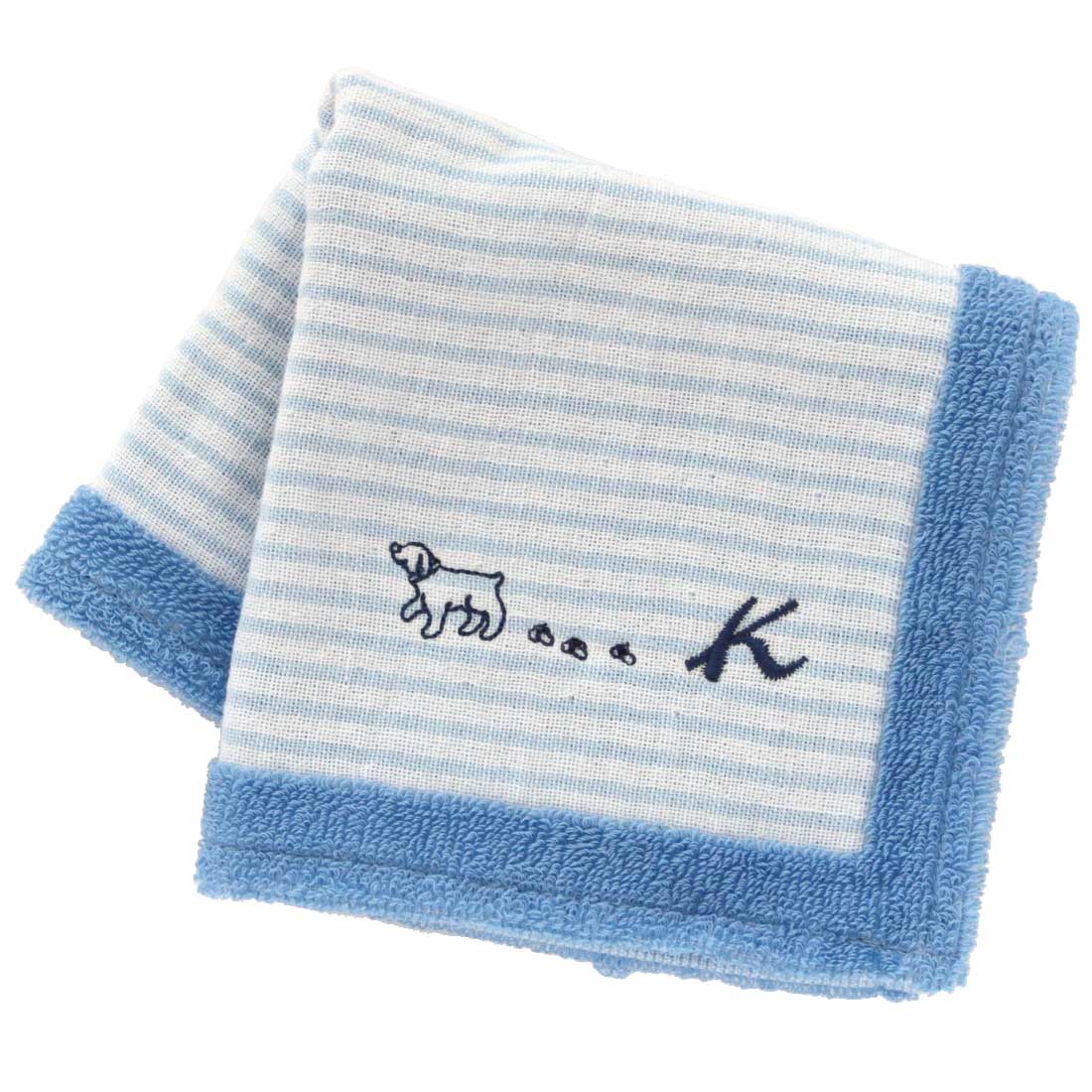 キタムラ 表ガーゼ地・裏タオル ストライプ いぬとKマーク ブルー 【キタムラ Kitamura】