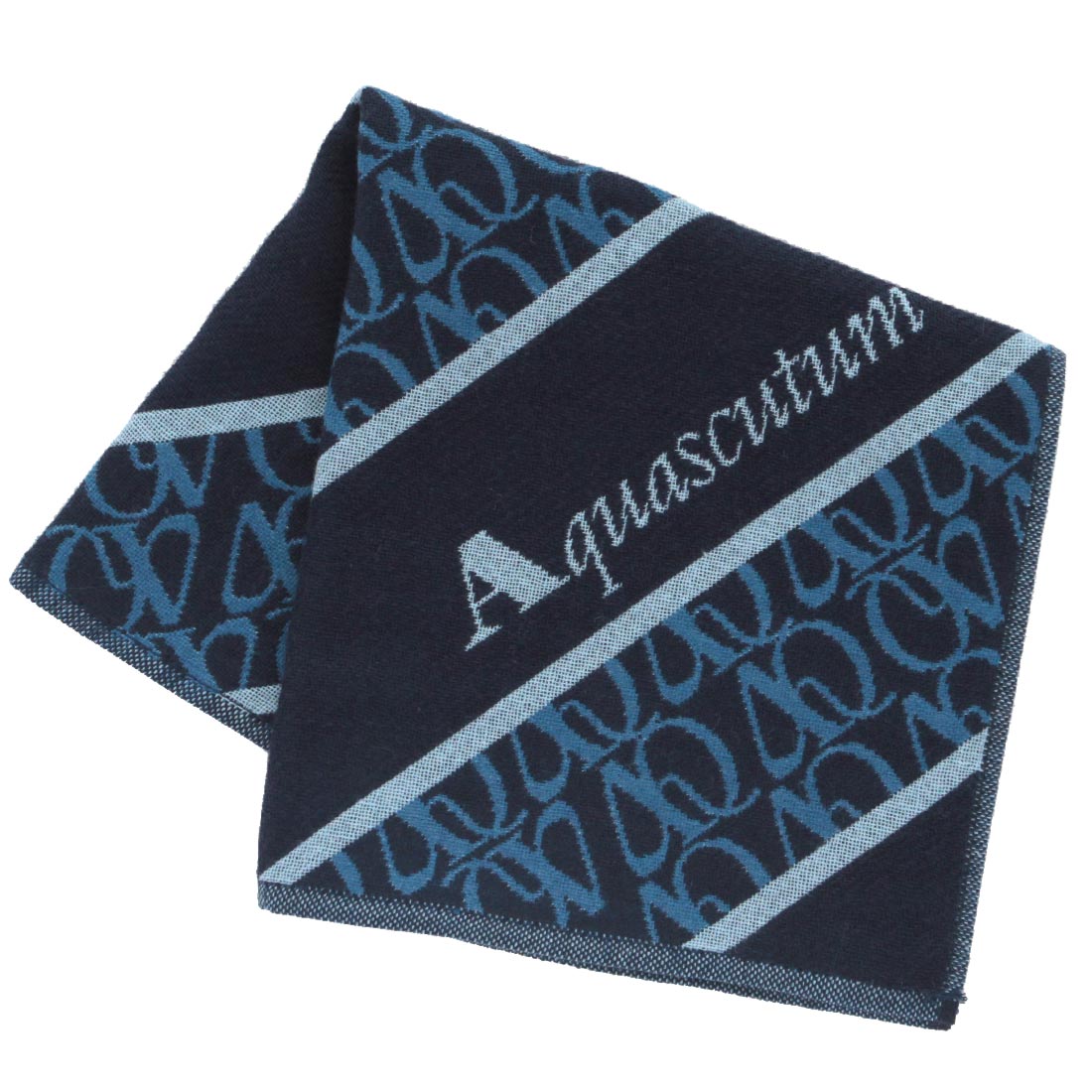 アクアスキュータム メンズ ガーゼハンカチ ロゴストライプ ブルー 【Aquascutum】