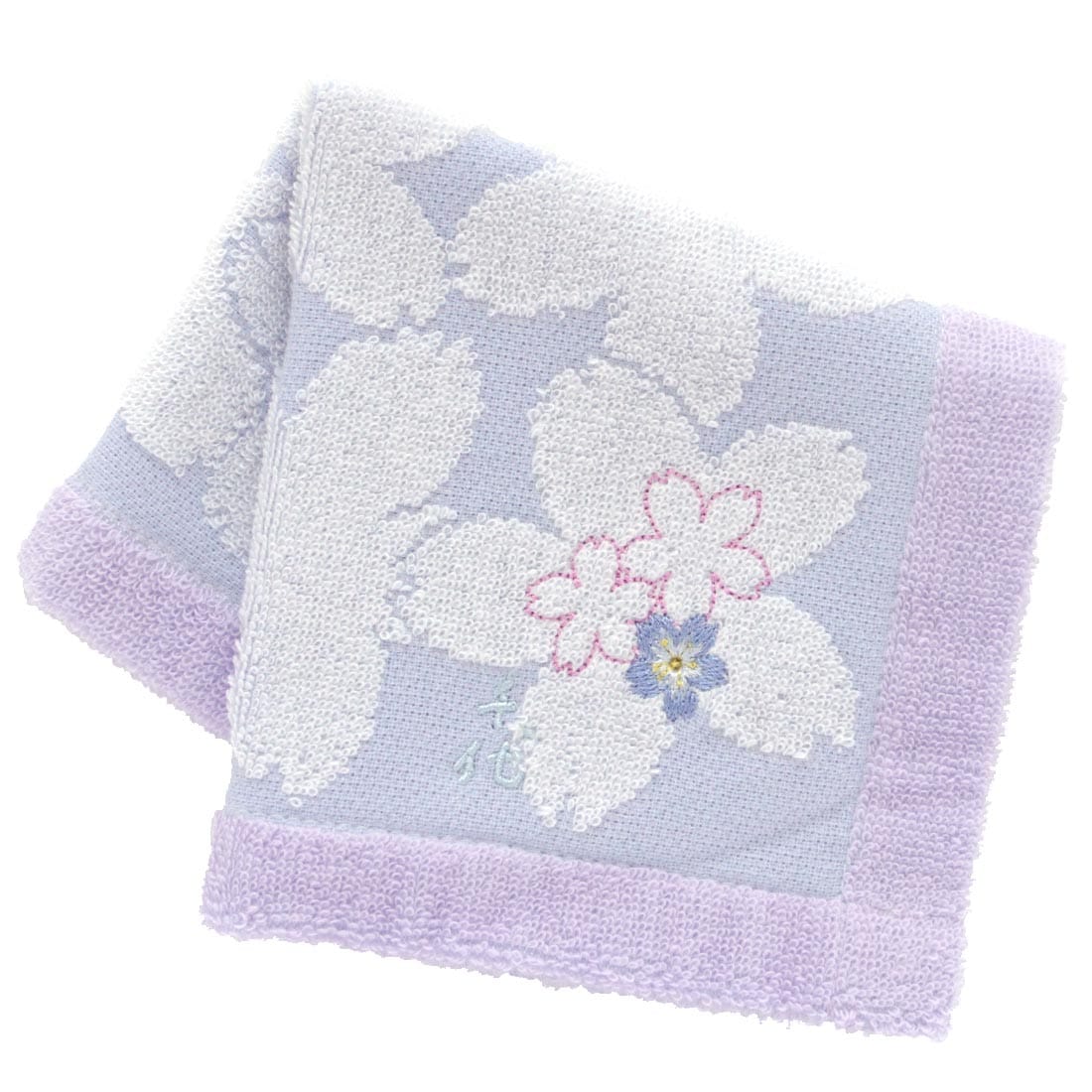 宇野千代 タオルハンカチ グラデーションカラー ワンポイント桜刺繍 ブルー 【宇野千代】