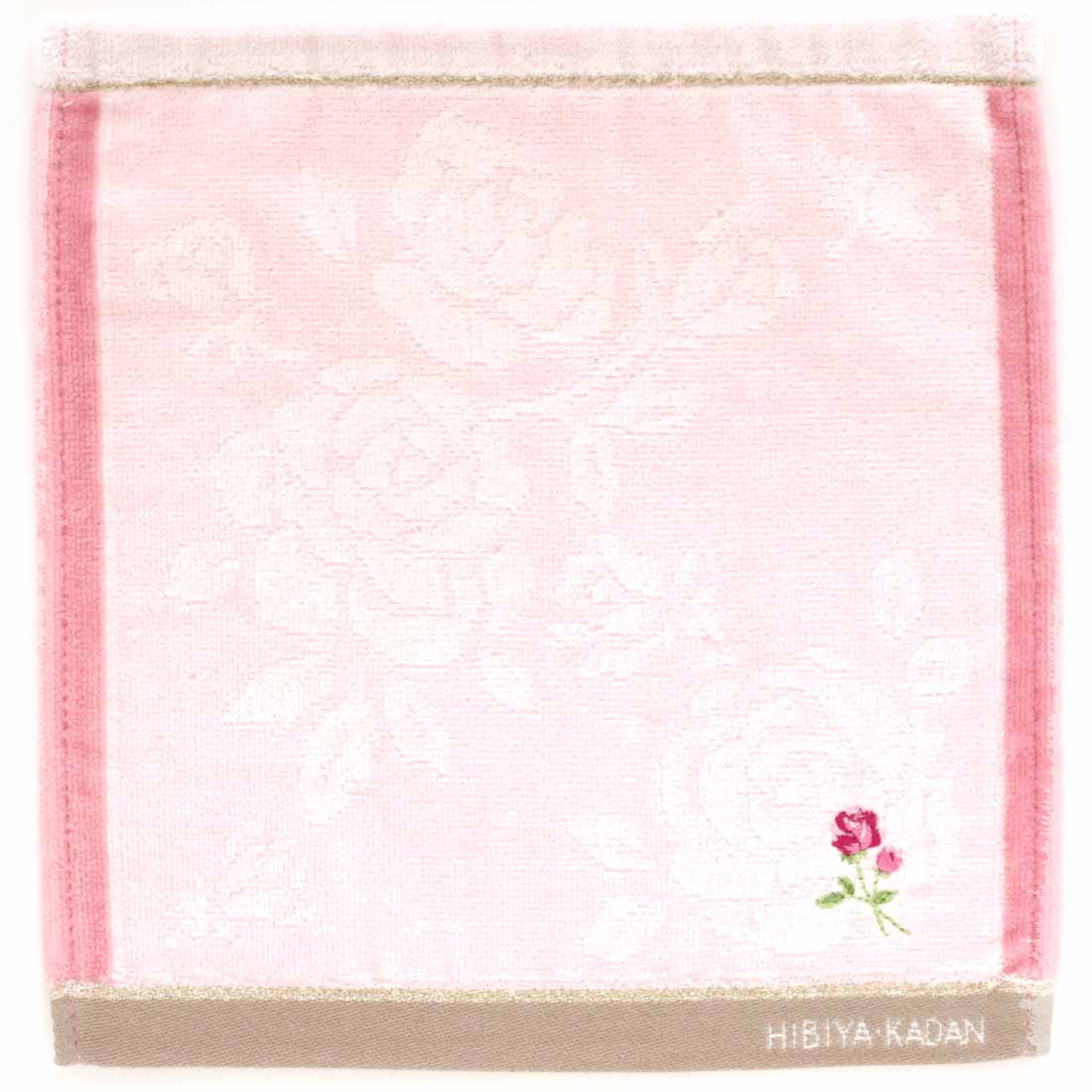 ヒビヤカダン タオルハンカチ バラモチーフ 縁取りステッチ ピンク 【日比谷花壇 HIBIYA-KADAN】