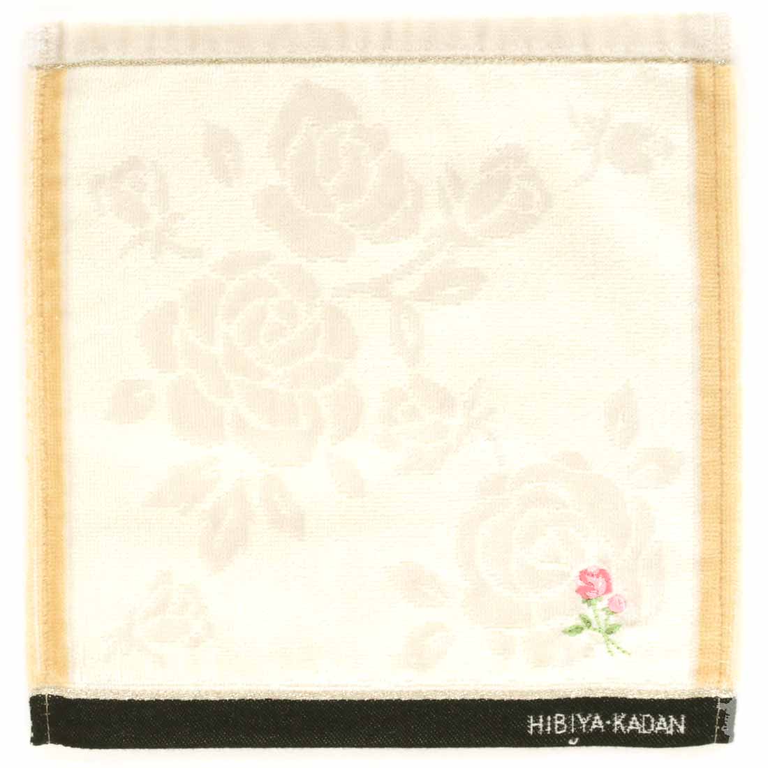 ヒビヤカダン タオルハンカチ バラモチーフ 縁取りステッチ アイボリー 【日比谷花壇 HIBIYA-KADAN】