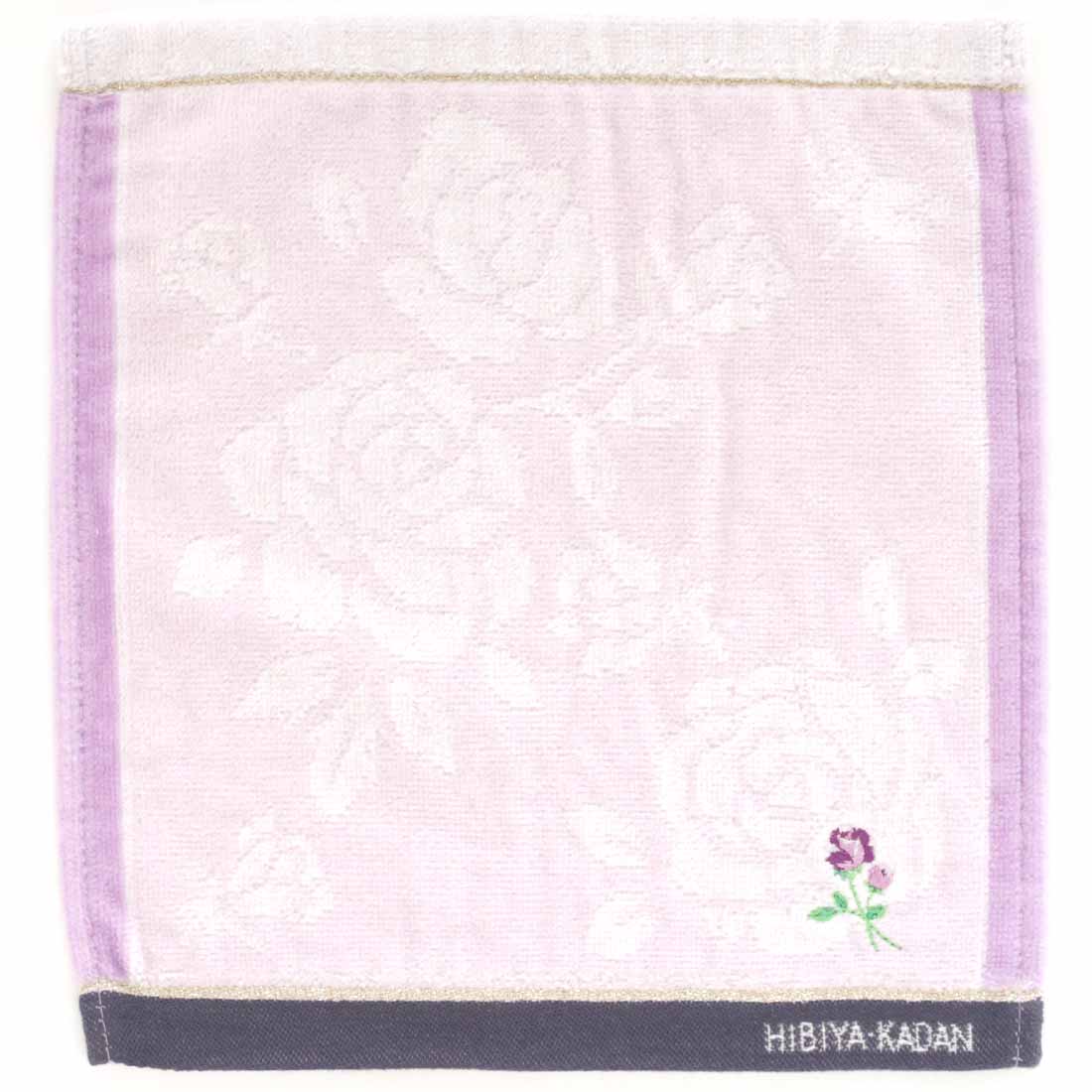 ヒビヤカダン タオルハンカチ バラ刺繍 ラベンダー 【日比谷花壇 HIBIYA-KADAN】