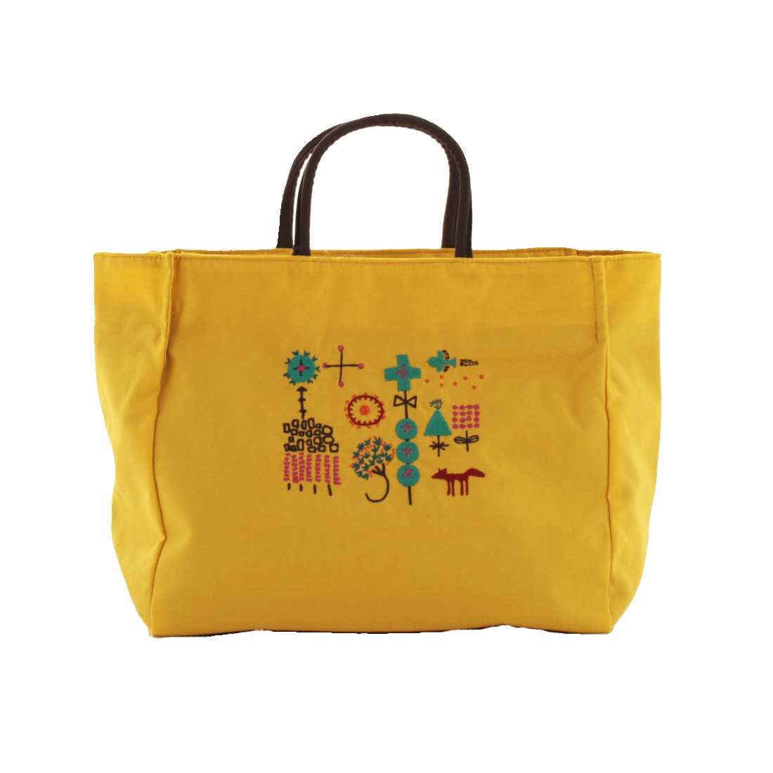 【送料無料】アツコマタノ 刺繍 マチ付きトート(大)<小さな森> イエロー 【Atsuko Matano】