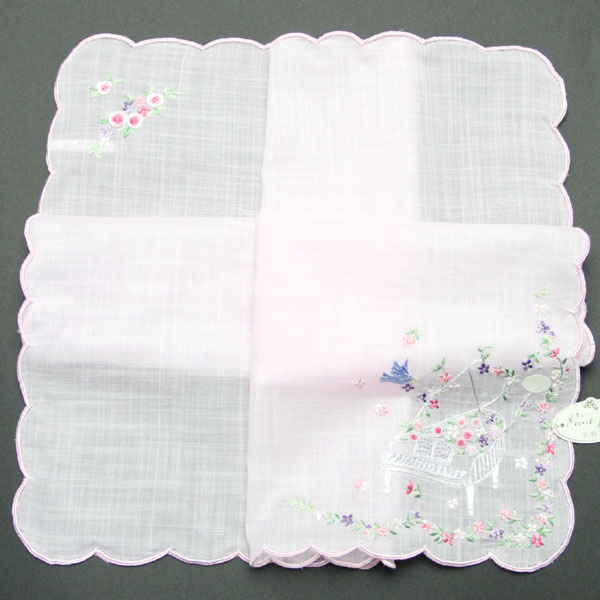ポワンポワン ベトナム手刺繍ハンカチ 6223-01 ピンク