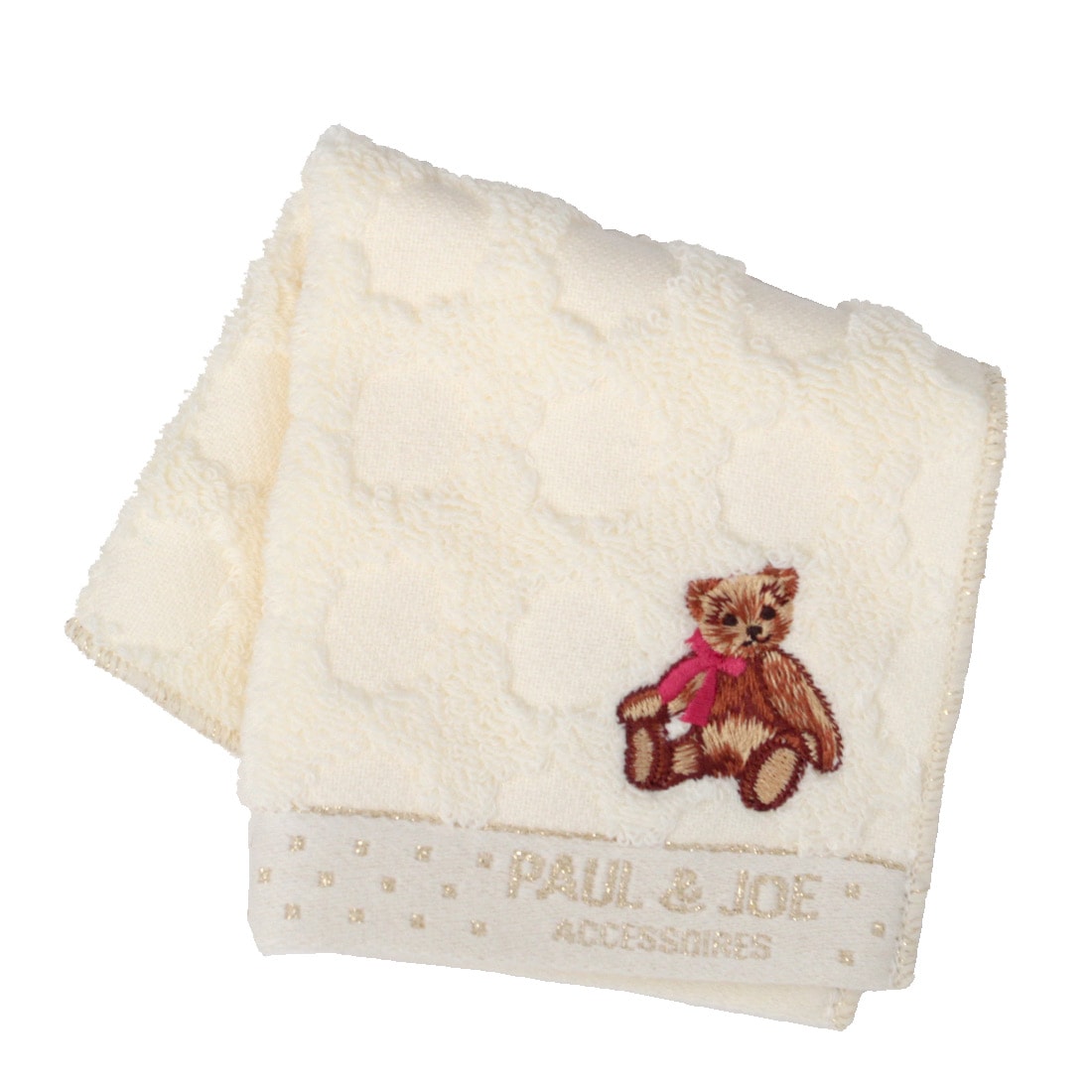 ポール&ジョー アクセソワ ミニ タオルハンカチ(20cm)テディベアモチーフ アイボリー 【PAUL&JOE ポールアンドジョー】