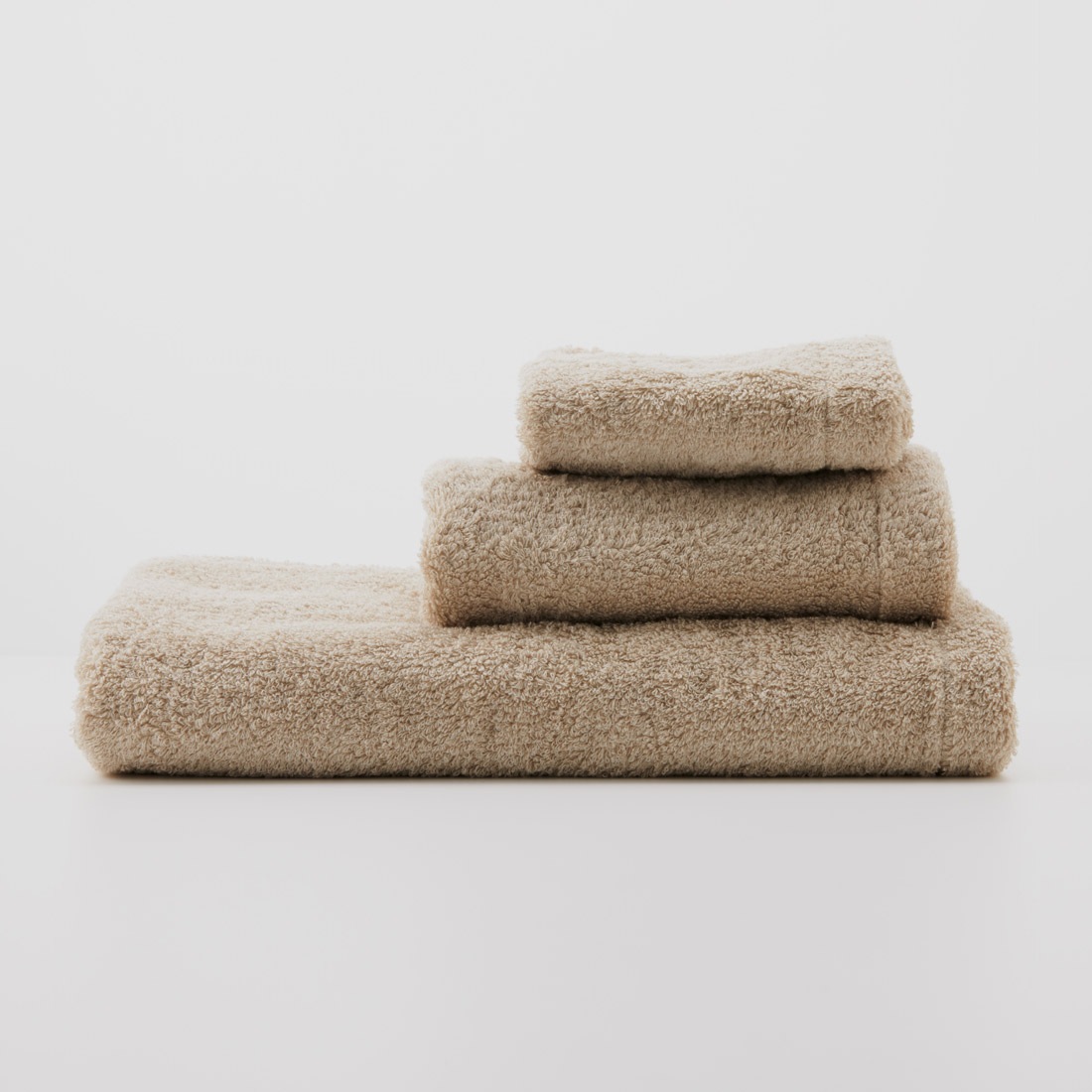 仕上げの工程では、天然地下水で丁寧にゆっくりと時間をかけて洗うことで綿に負担をかけず、柔軟剤を必要としない極上の肌触りを実現しました。ホテルリネンでは珍しい杢調のナチュラルブラウンカラーはインテリアとしても抜群の存在感を放ち、スタイリッシュな空間にも馴染みます。