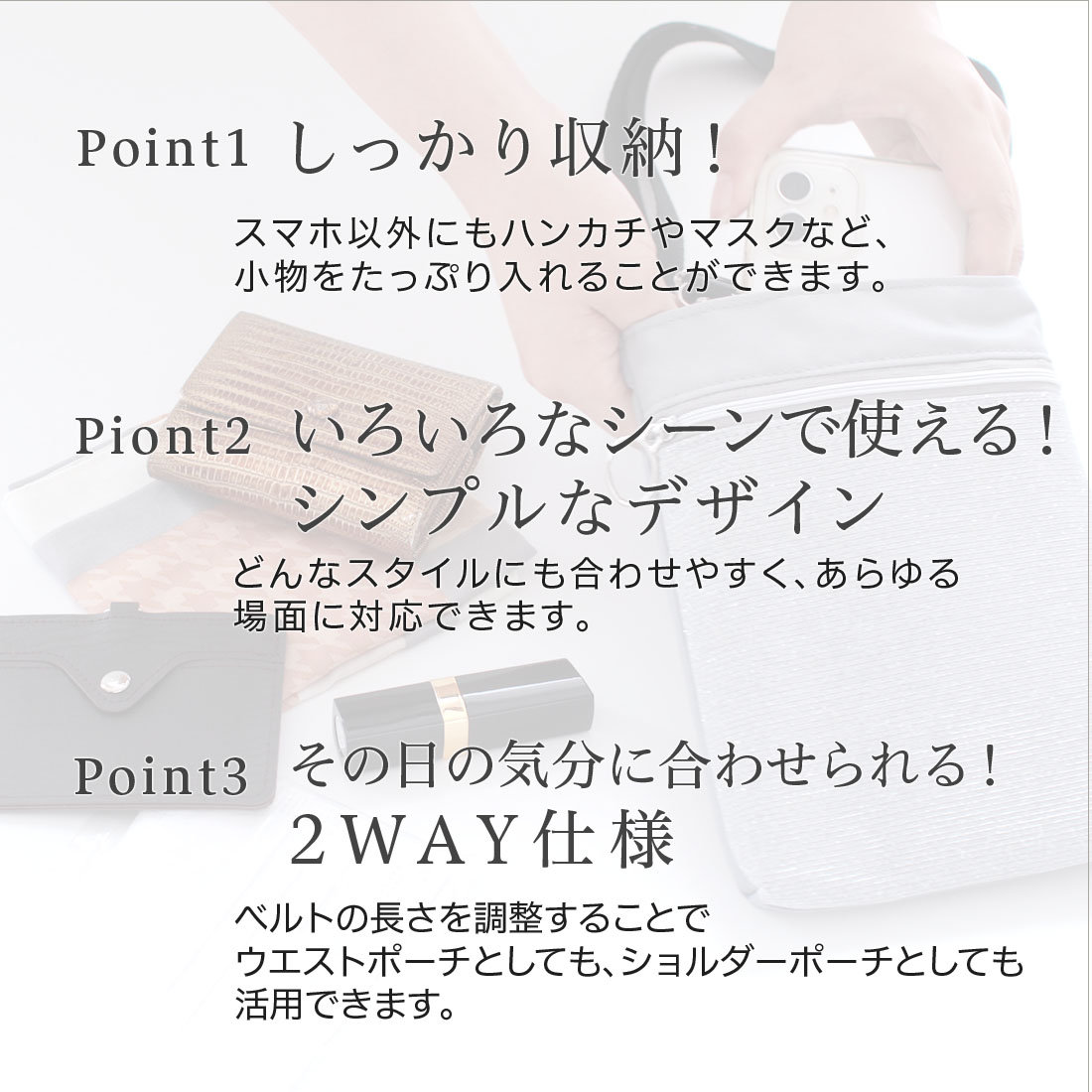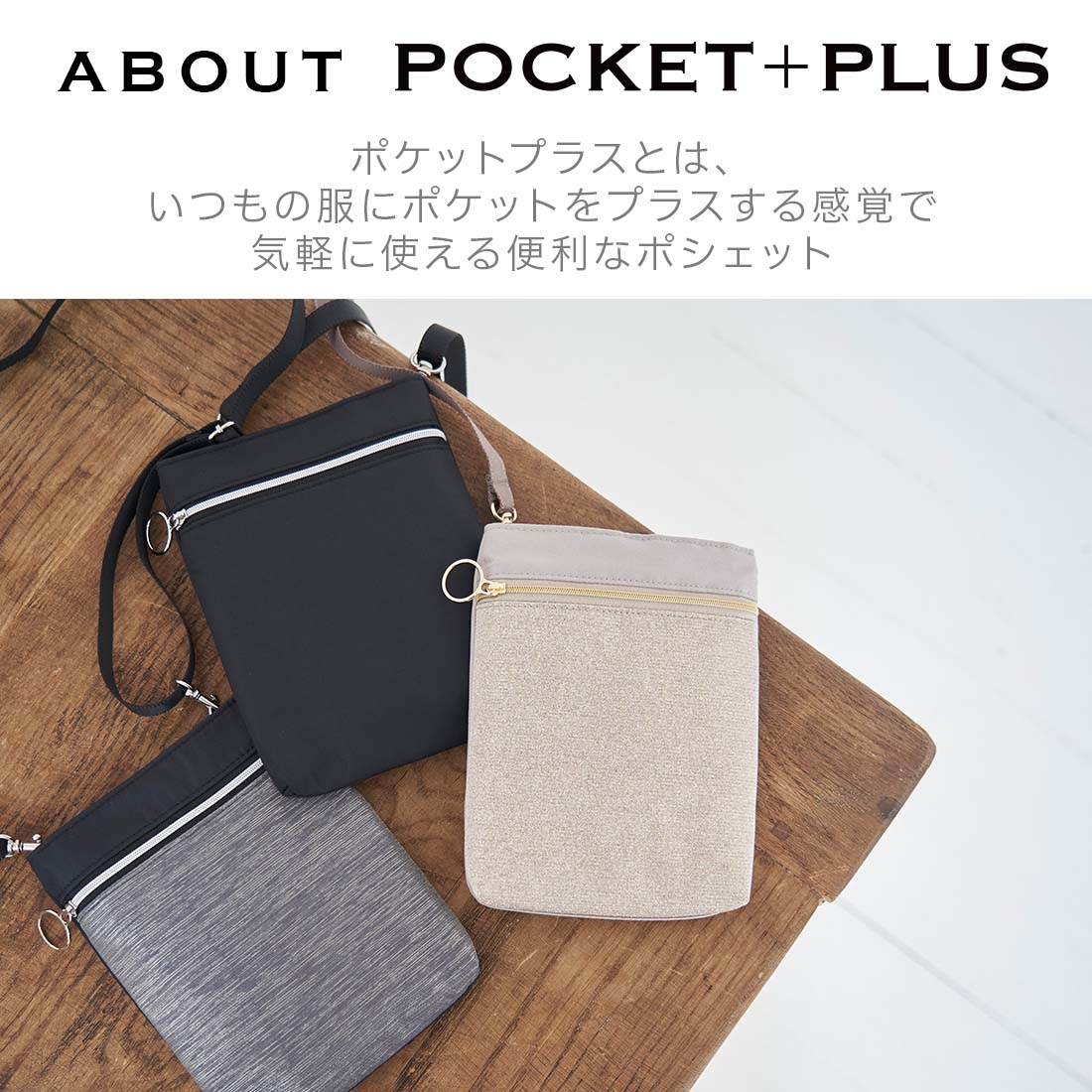 ポケットプラス ショルダーポーチ 縦横どちらでも使える2WAYタイプ ベージュ 【POCKET+PLUS】