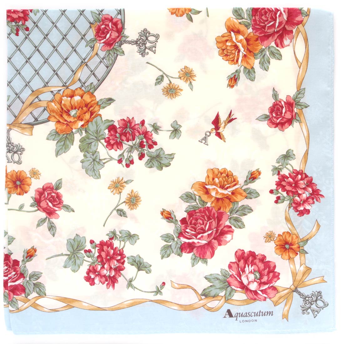 アクアスキュータム タオルハンカチ フラワー ブルー 【Aquascutum】