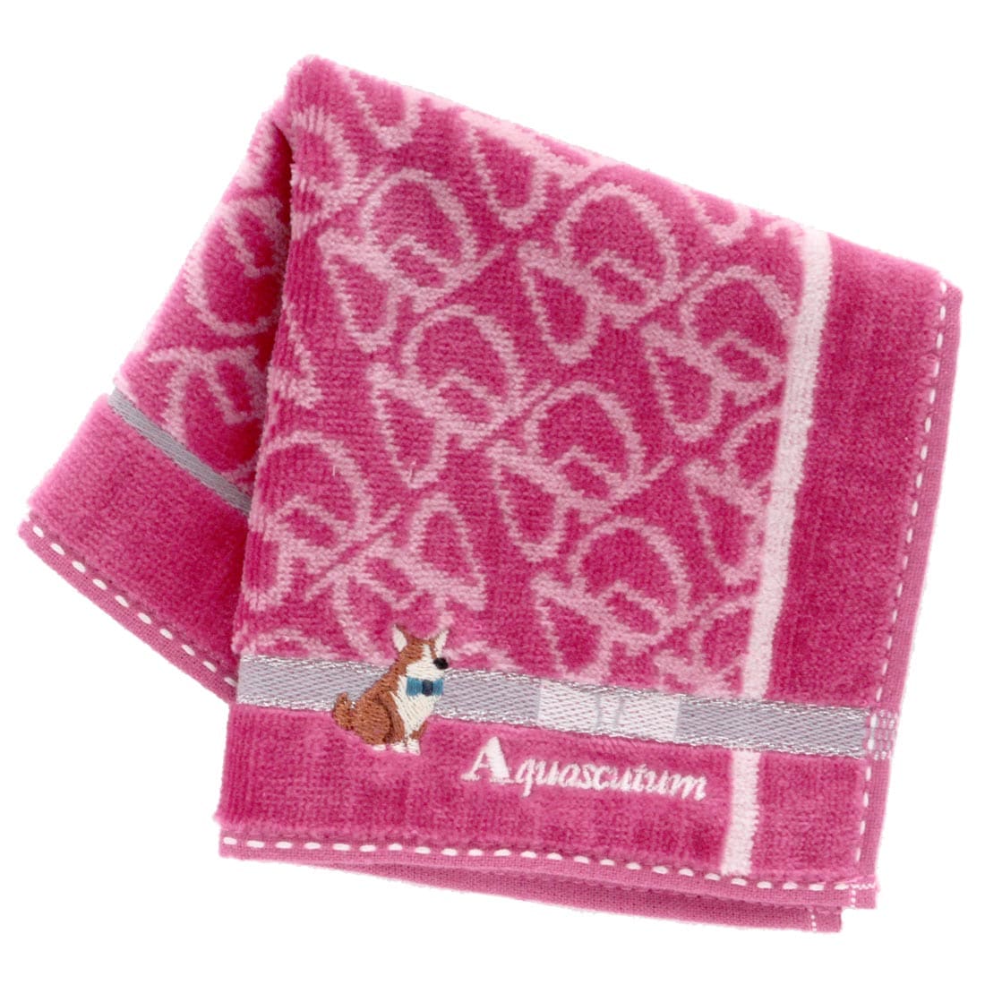 アクアスキュータム タオルハンカチ コーギー刺繍 ピンク 【Aquascutum】
