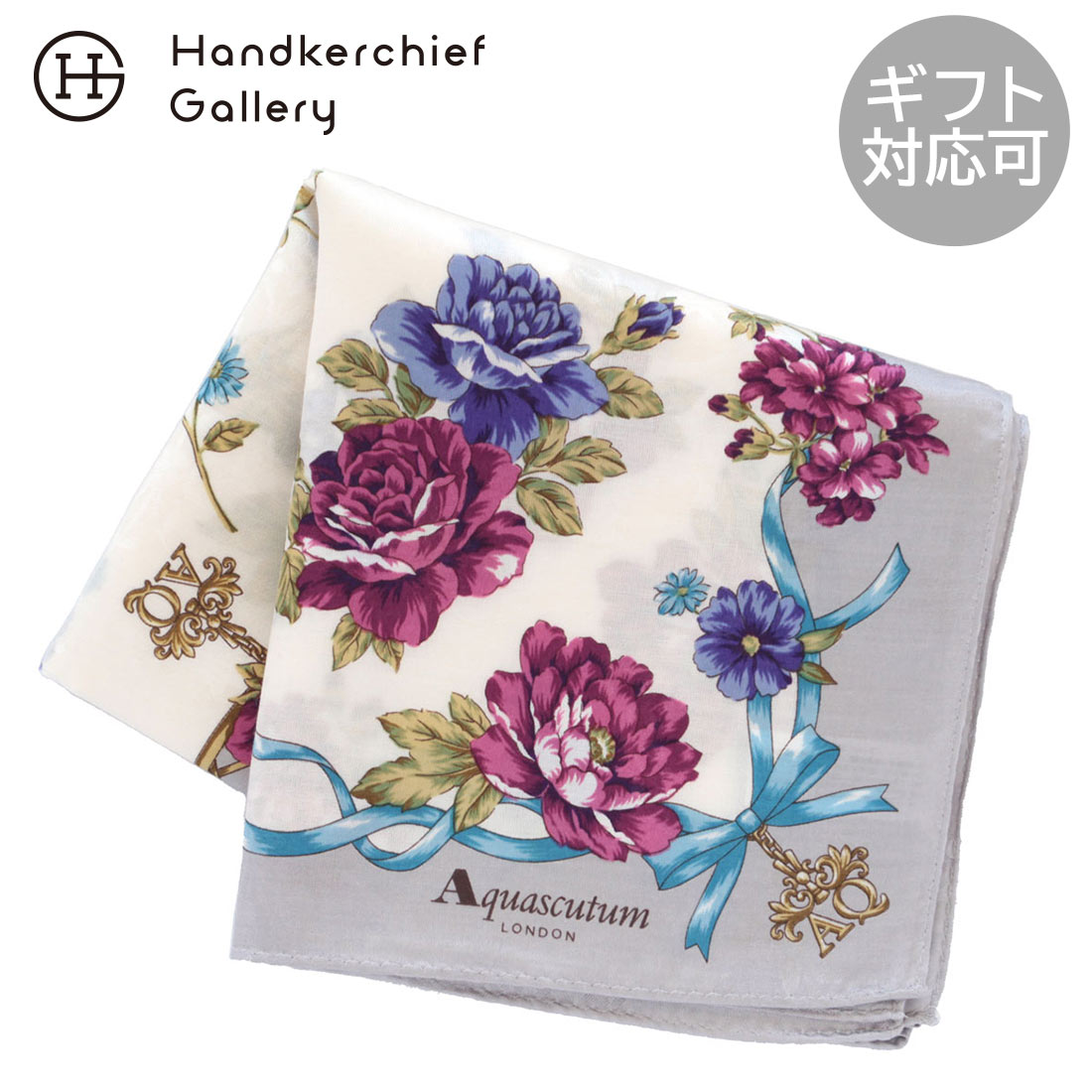 アクアスキュータム タオルハンカチ コーギー刺繍 グレー 【Aquascutum】