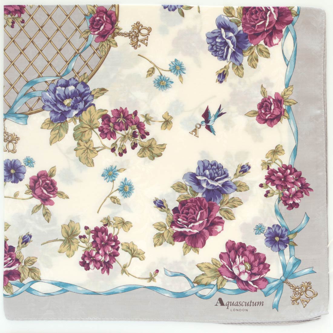 アクアスキュータム ガーゼハンカチ チェック柄 ブルー 【Aquascutum】