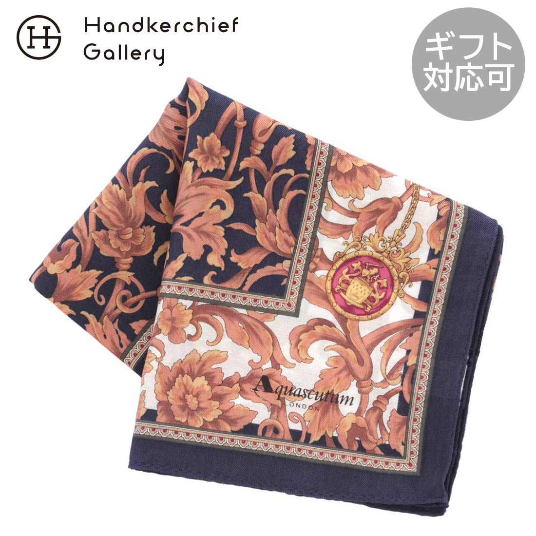 アクアスキュータム 三重ガーゼハンカチ カリグラフィー ネイビー 【Aquascutum】
