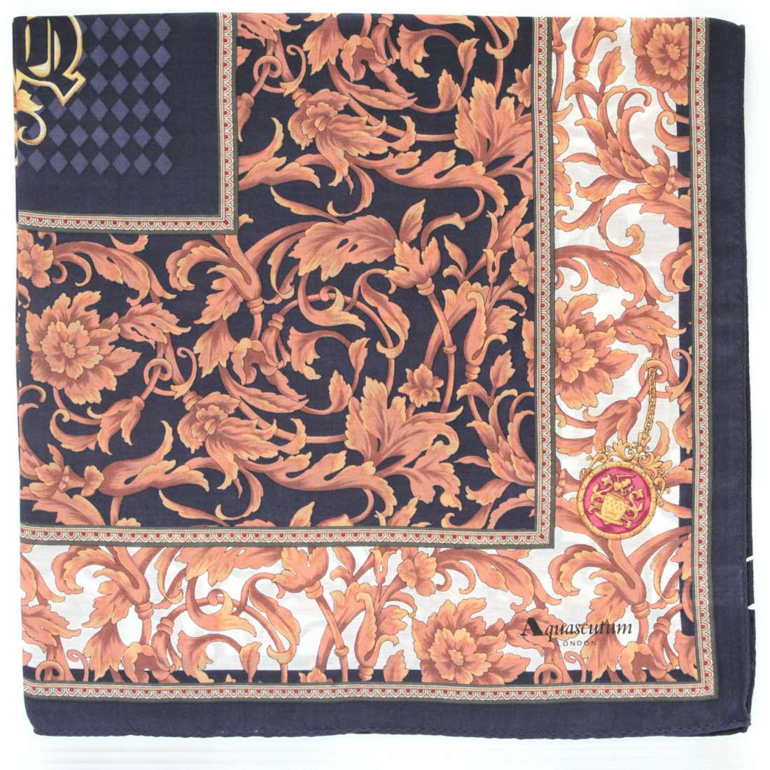 アクアスキュータム 大判 綿シルクハンカチ(58cm)ベルト柄&メタルモチーフ ネイビー 【Aquascutum】