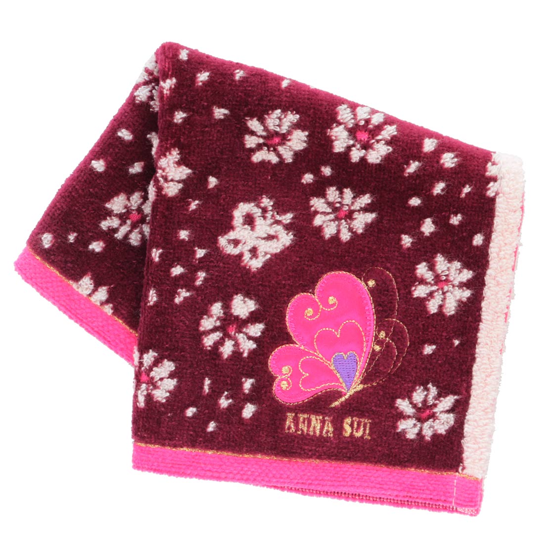 アナ スイ タオルハンカチ(ブランド専用ギフトボックス入り)バタフライ&ローズ パープル 【アナスイ ANNA SUI】