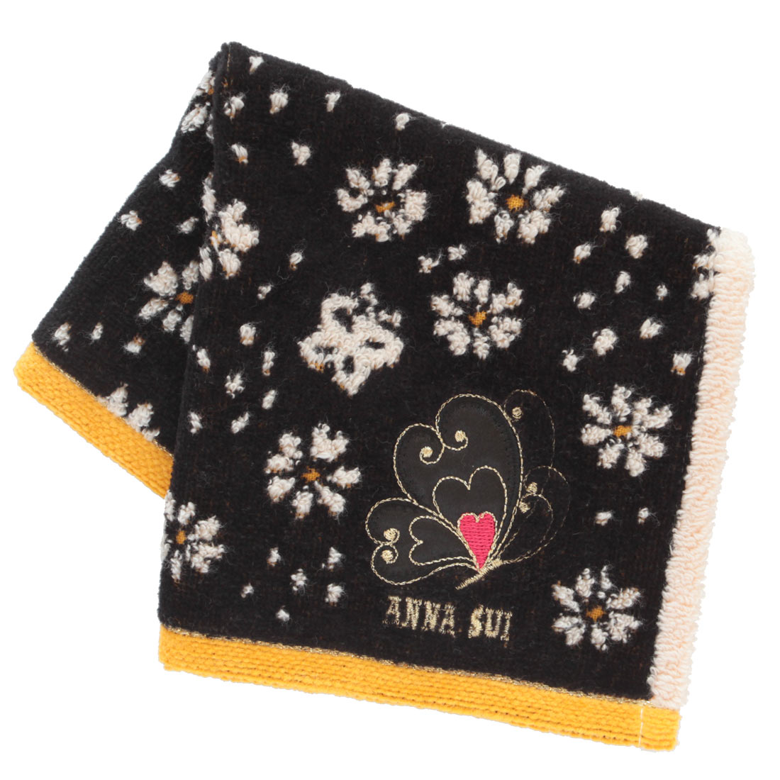 アナ スイ タオルハンカチ バタフライ アップリケ刺繍 イエロー 【アナスイ ANNA SUI】