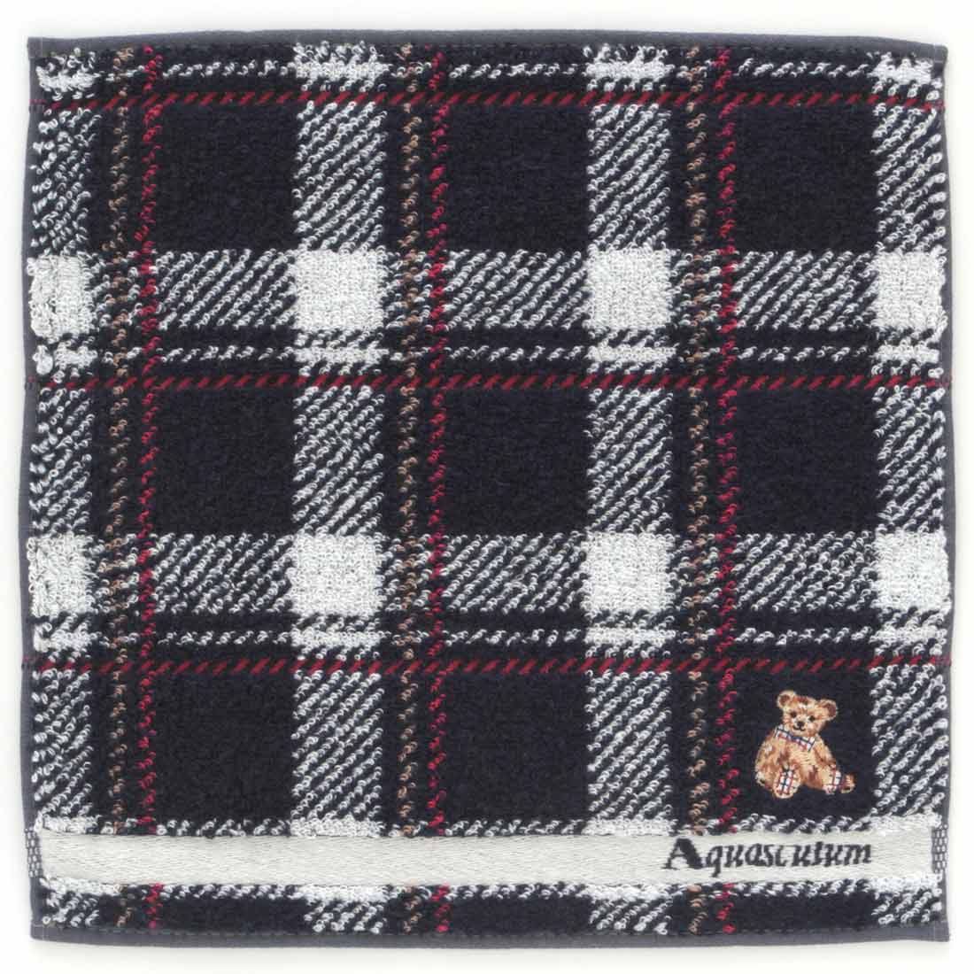 アクアスキュータム タオルハンカチ チェック&クマ ネイビー 【Aquascutum】