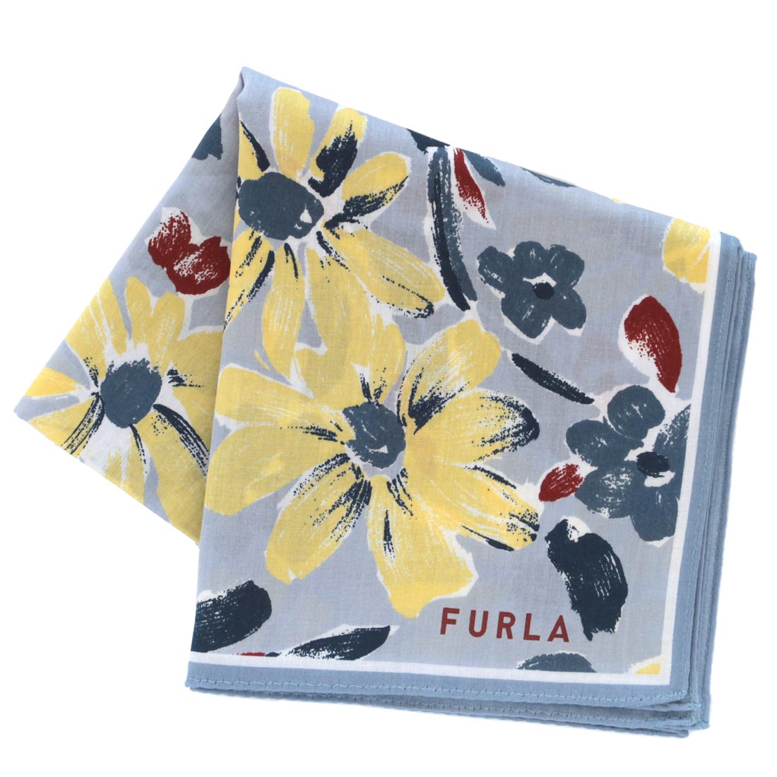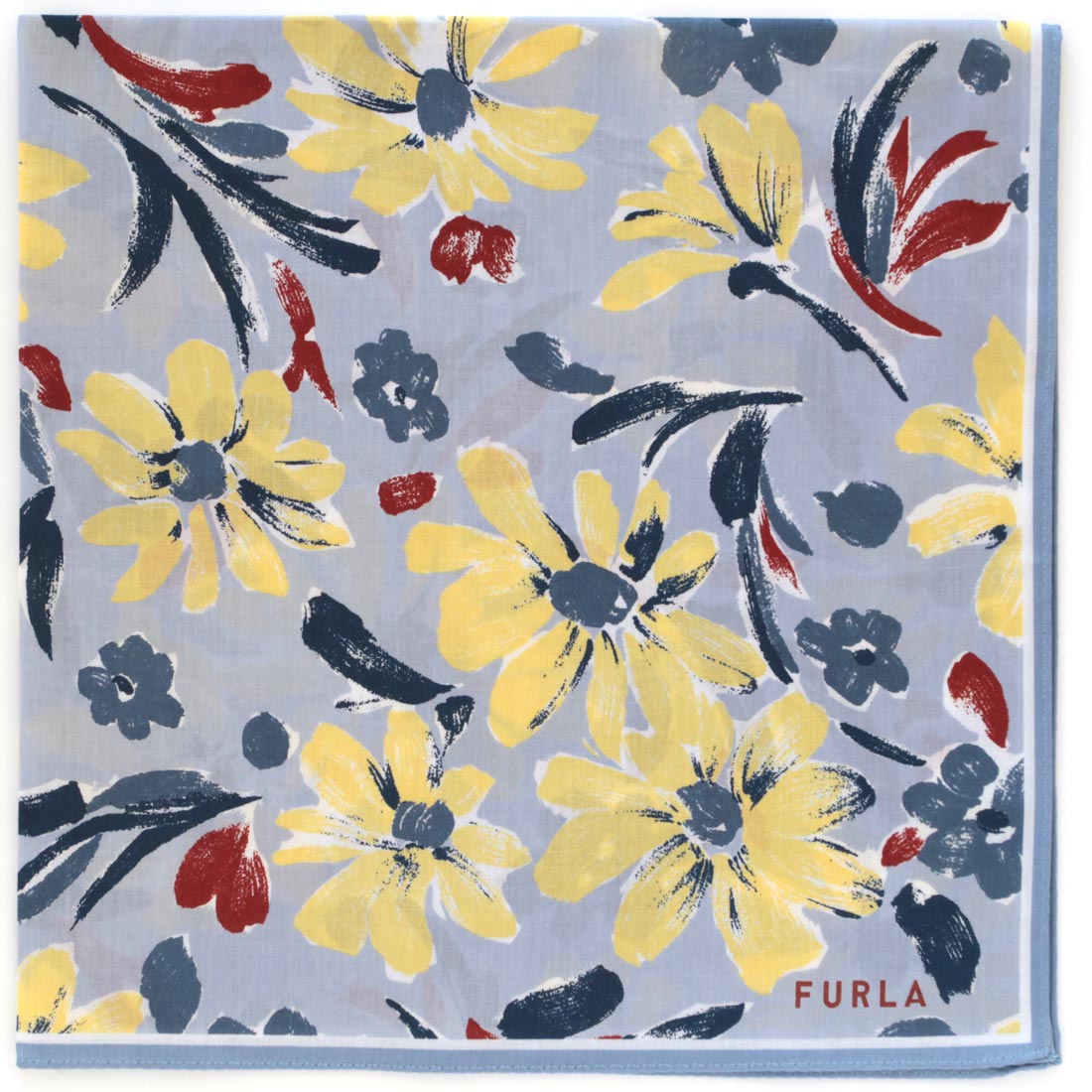 フルラ 大判 プリントハンカチ(58cm)花柄 ブルー 【FURLA】