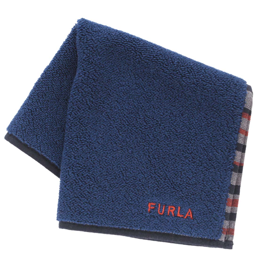 フルラ メンズ タオルハンカチ 背面ボーダー ネイビー 【FURLA】