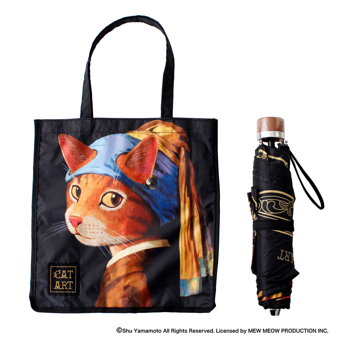 キャットアート ポーチ 真珠のイヤリングをした少女猫/ヨハネス・フェルネーコ ブラック【CAT ART】