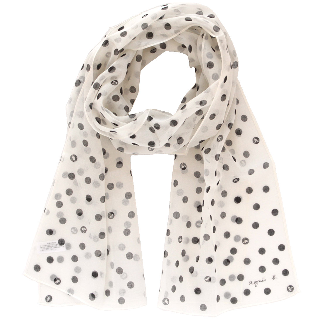 アニエスベー ロングチーフ(UVカット加工) ドット ホワイト 【agnes b】