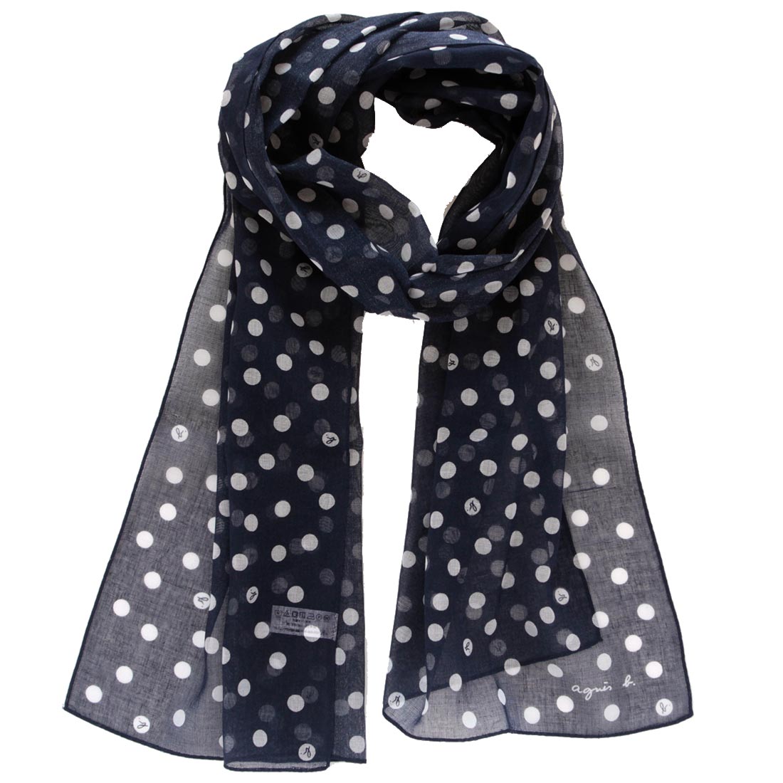 アニエスベー ロングチーフ(UVカット加工) ドット ネイビー 【agnes b】