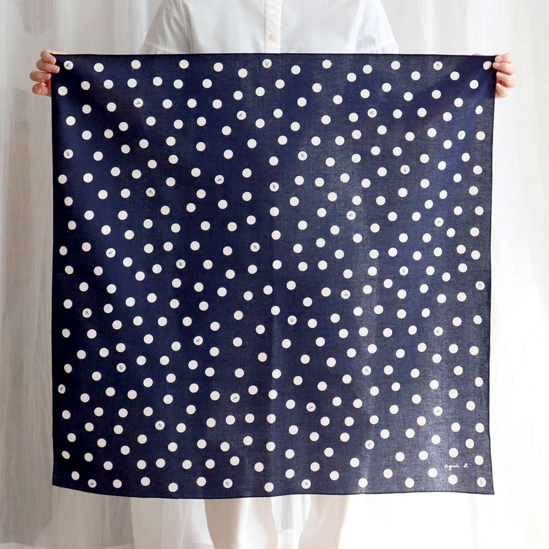 アニエスベー 大判 タオルハンカチ(28cm)アニマルドット グレー 【agnes b】