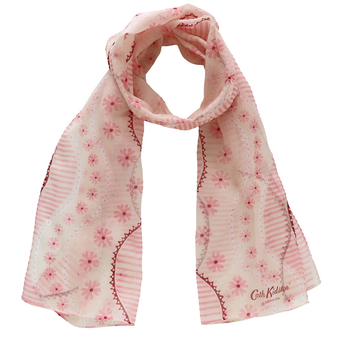 キャス キッドソン ロングチーフ(UVカット加工) 花柄ボーダー ピンク【Cath Kidston】