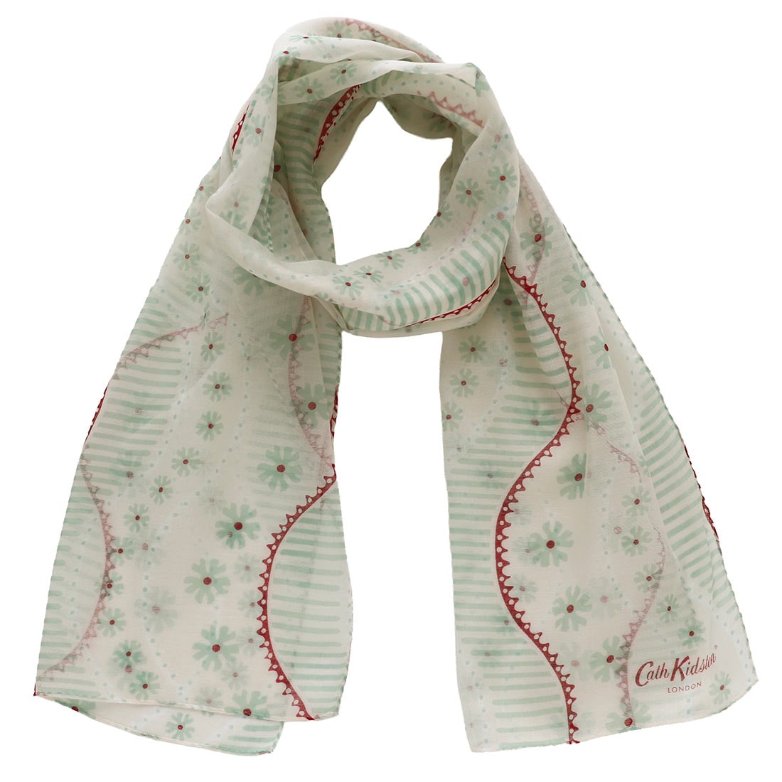 キャス キッドソン ロングチーフ(UVカット加工) 花柄ボーダー グリーン【Cath Kidston】