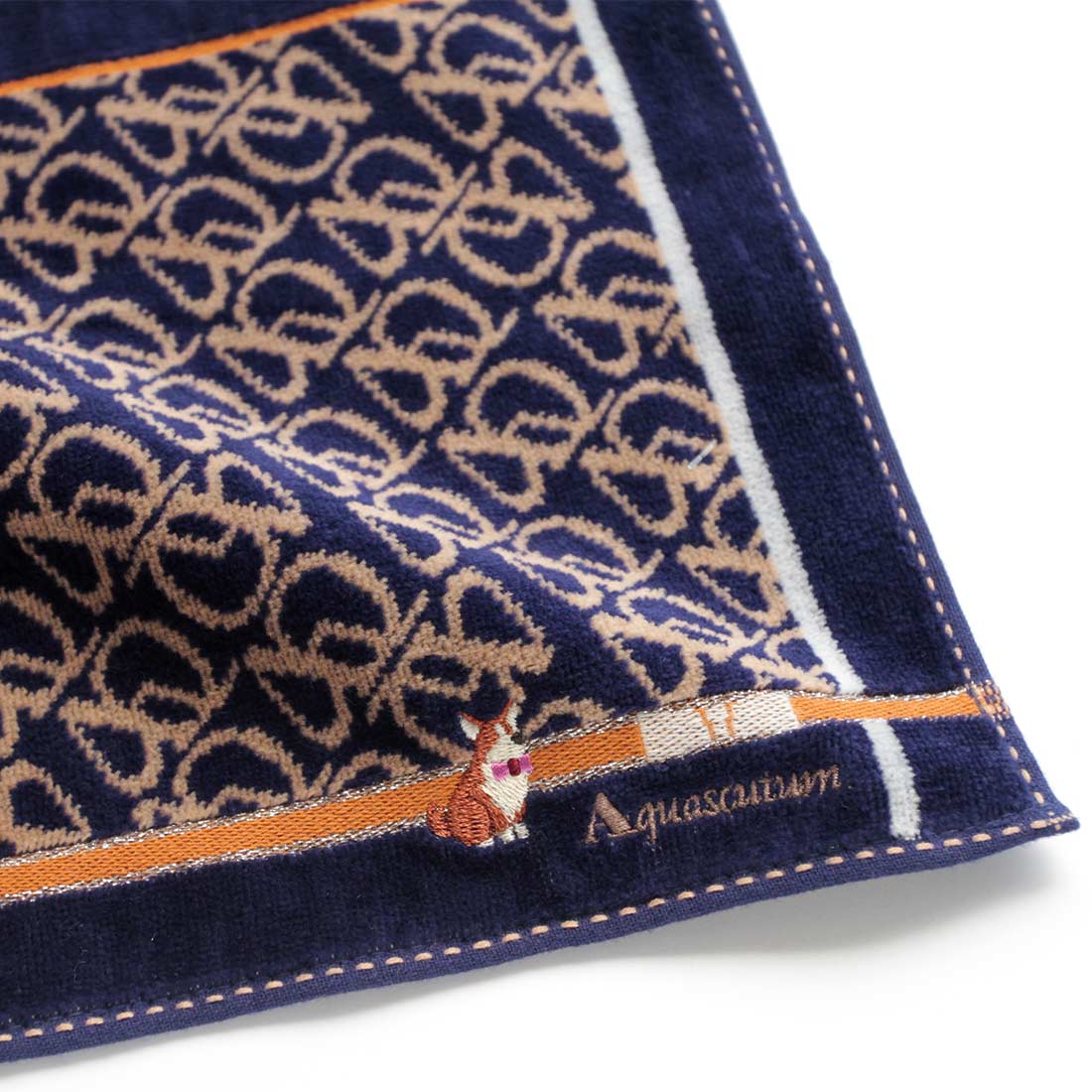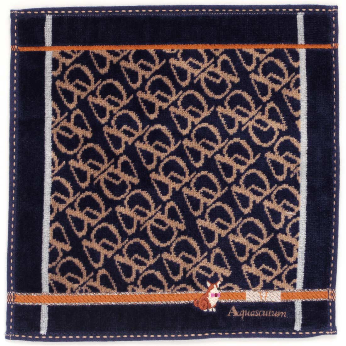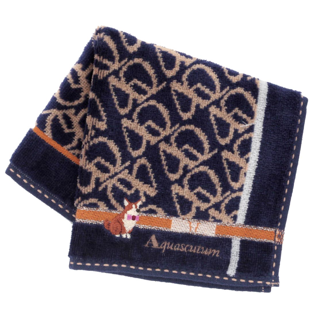 アクアスキュータム タオルハンカチ コーギー刺繍 グレー 【Aquascutum】