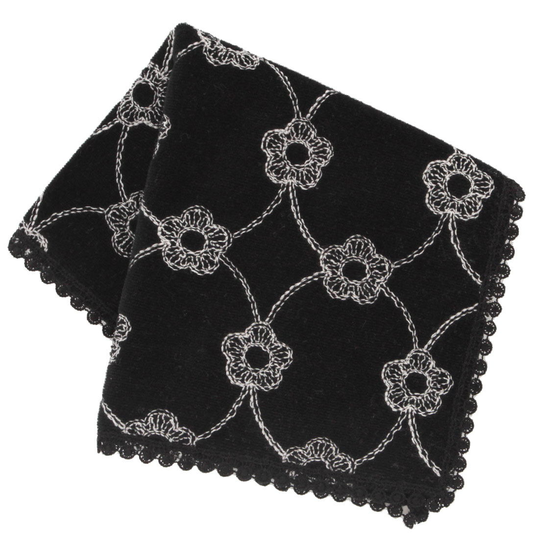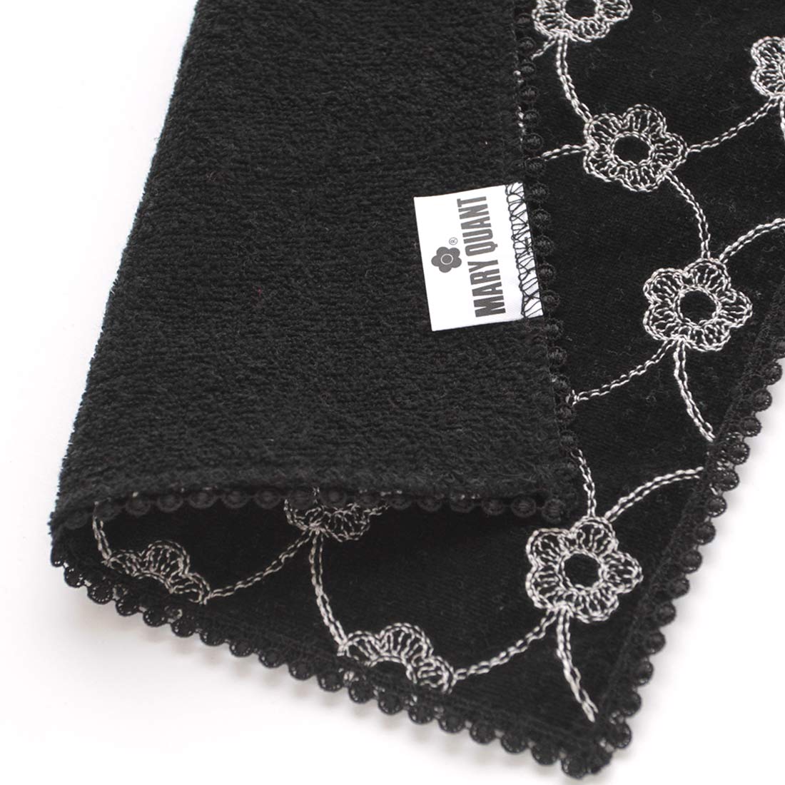 マリークワント 大判 タオルハンカチ(28cm)(パッケージ入り)スパンコール刺繍 ブラック 【MARY QUANT マリクワ】