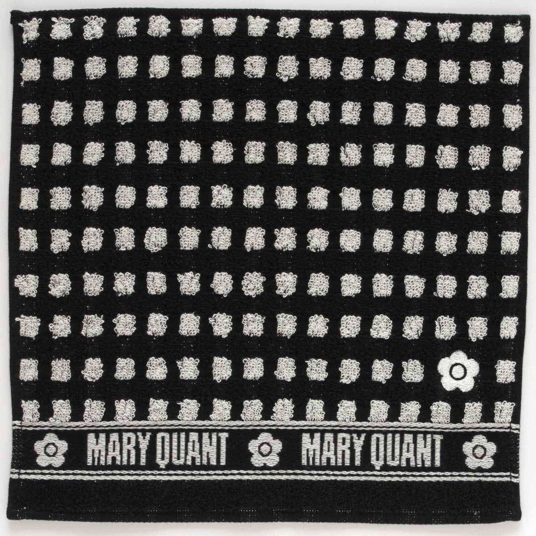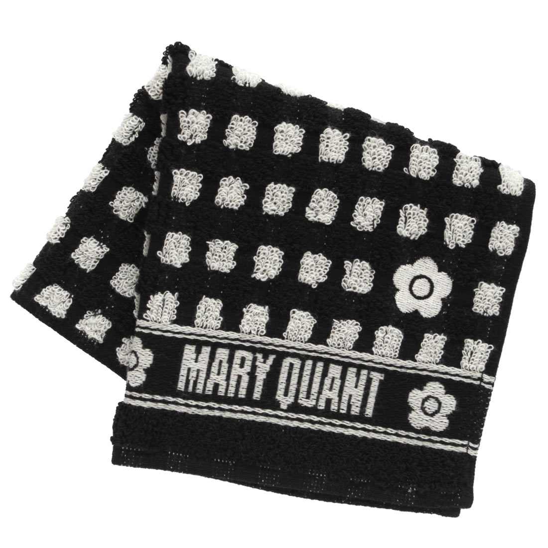 マリークワント 大判 タオルハンカチ(28cm)(パッケージ入り)スパンコール刺繍 ブラック 【MARY QUANT マリクワ】