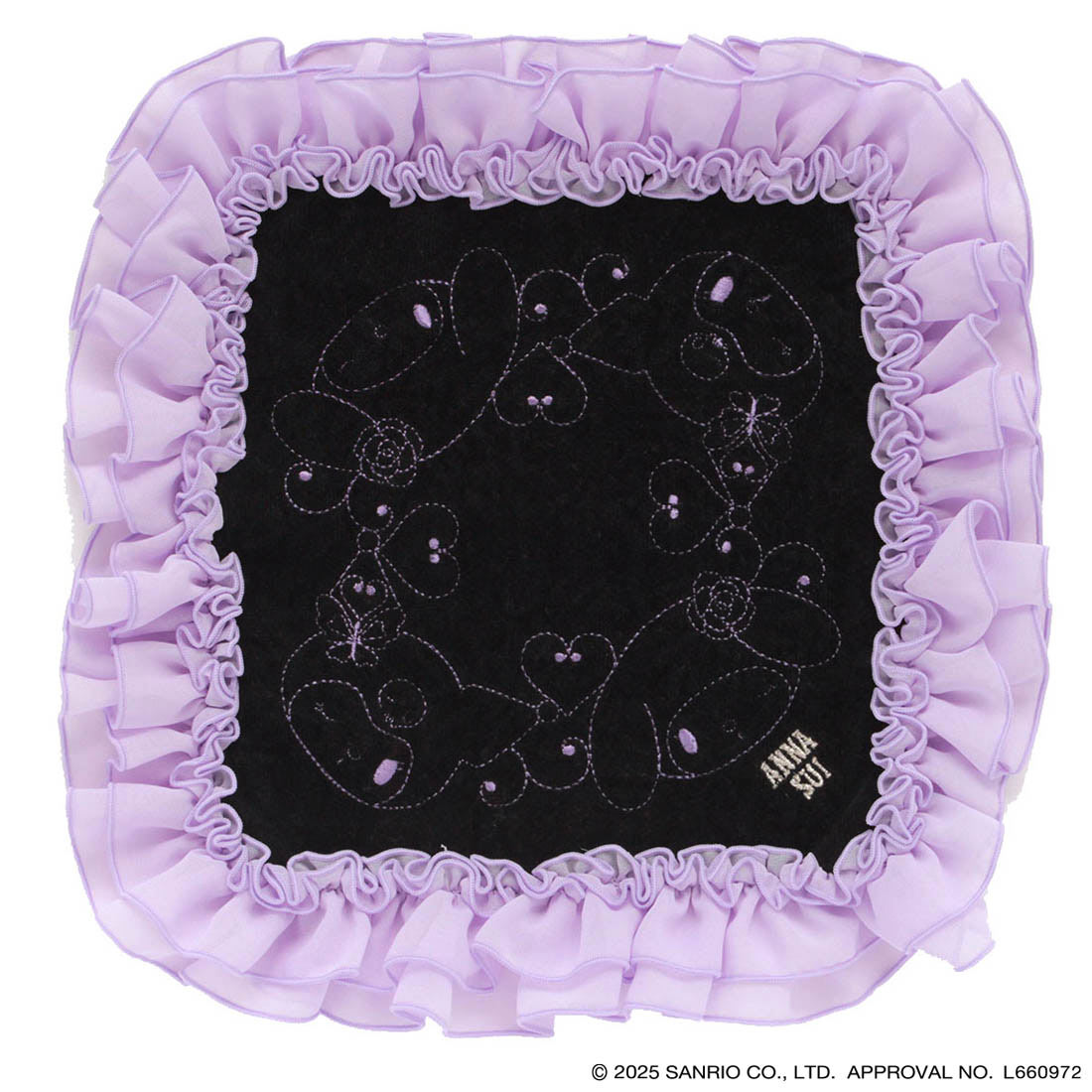 アナ スイ 大判 タオルハンカチ(28cm)干支 ユニコーン刺繍 パープル 【アナスイ ANNA SUI】