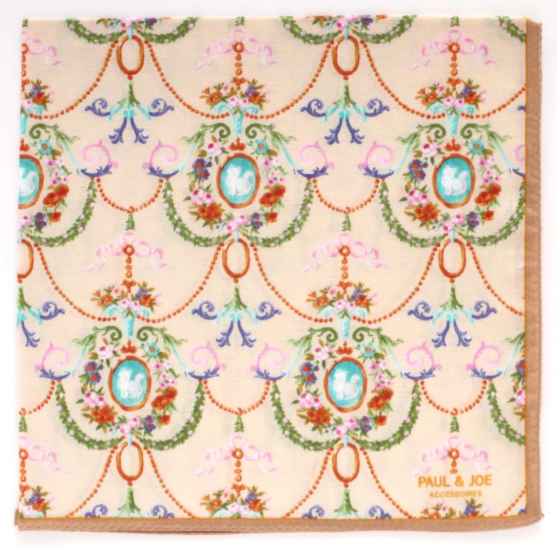 ポール&ジョー アクセソワ 大判 ガーゼハンカチ(58cm)古典装飾柄 ピンク 【PAUL&JOE ポールアンドジョー】