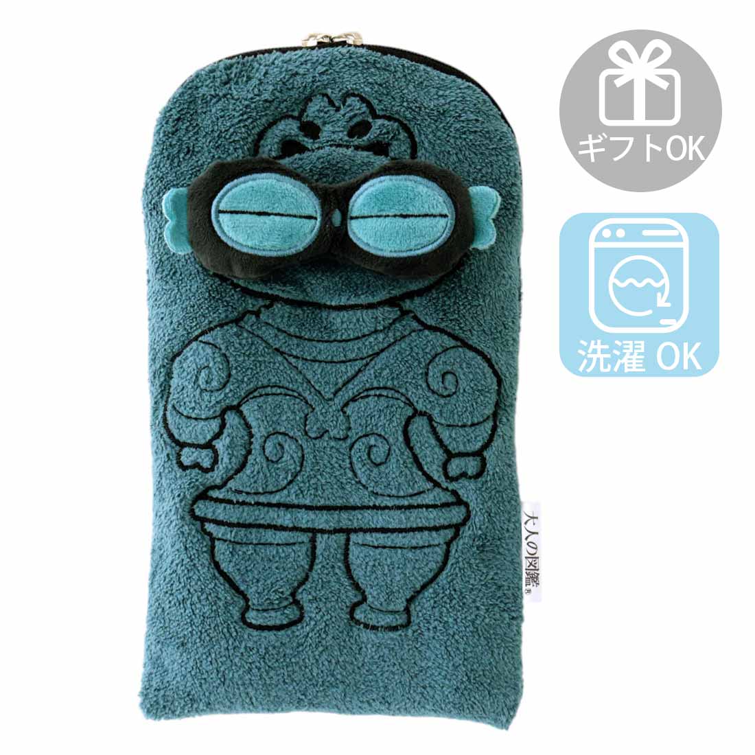 大人の図鑑 ファスナー付きタオル ペットボトルケース 遮光器土偶 ターコイズ