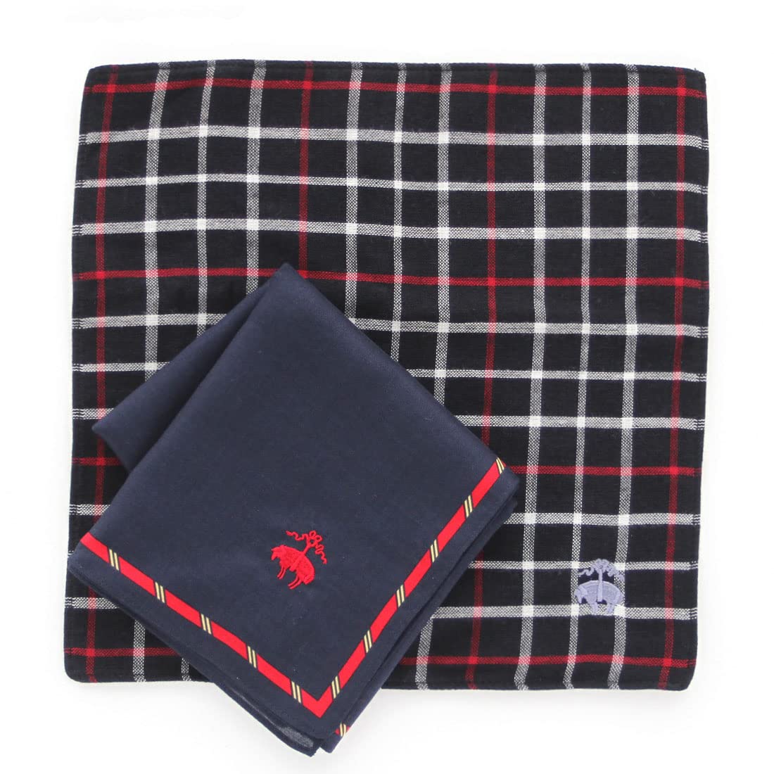 ブルックス ブラザーズ 表ガーゼ・裏タオルハンカチ 干支 蹄鉄刺繍 レッド 【Brooks Brothers】