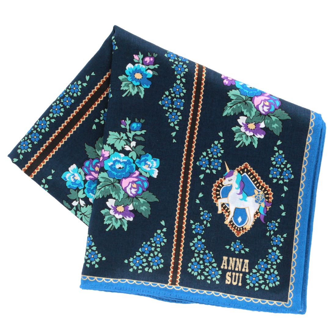 アナ スイ 大判 タオルハンカチ(28cm)干支 ユニコーン刺繍 ブルー 【アナスイ ANNA SUI】